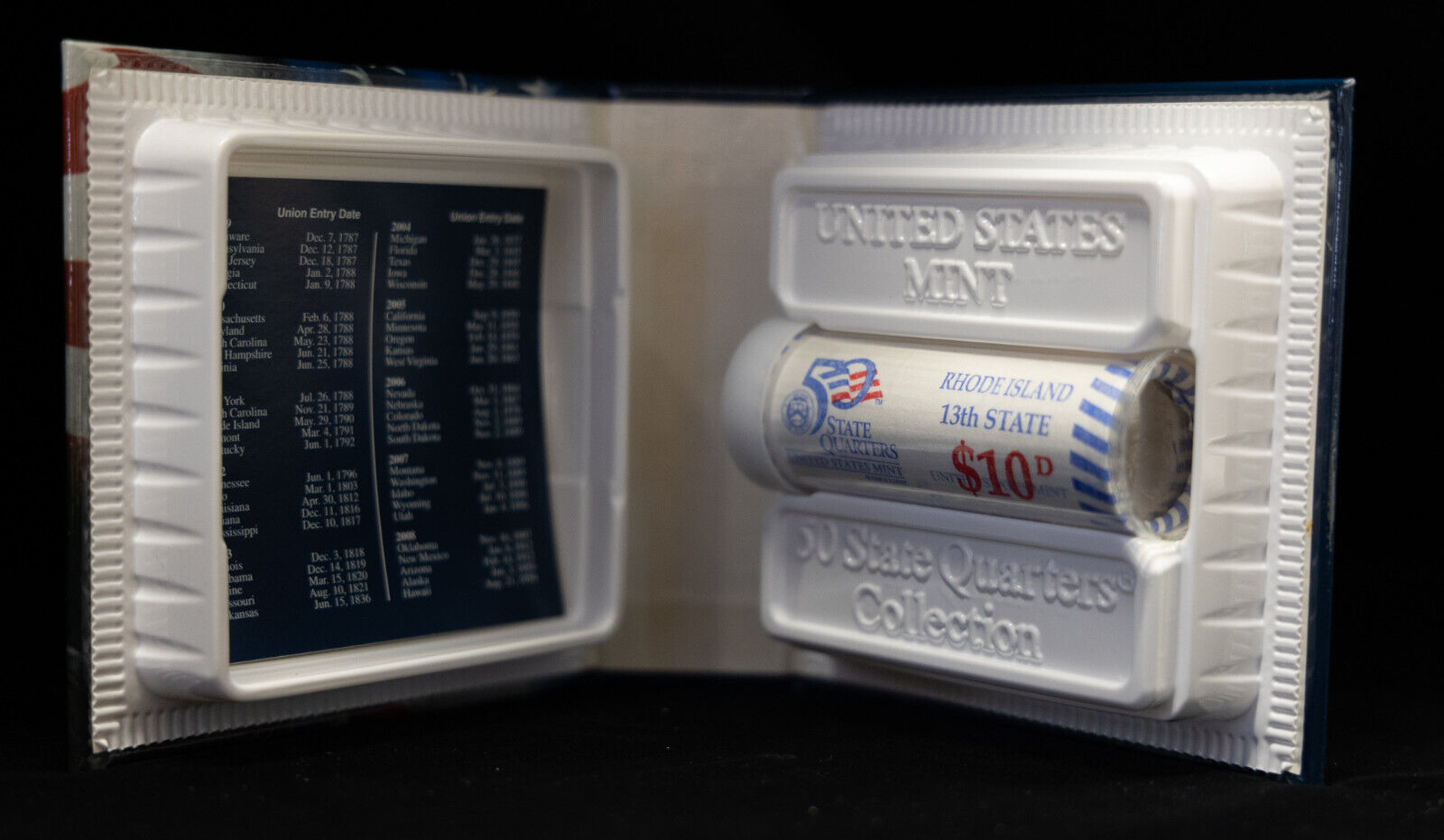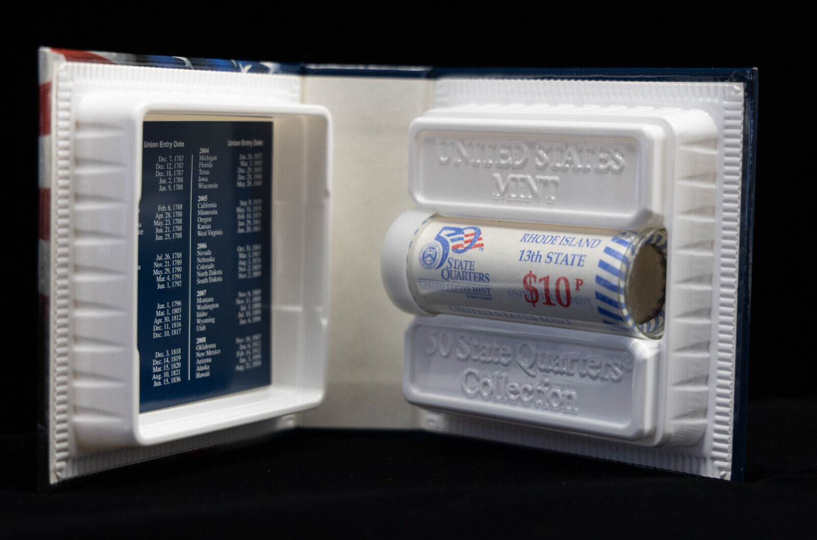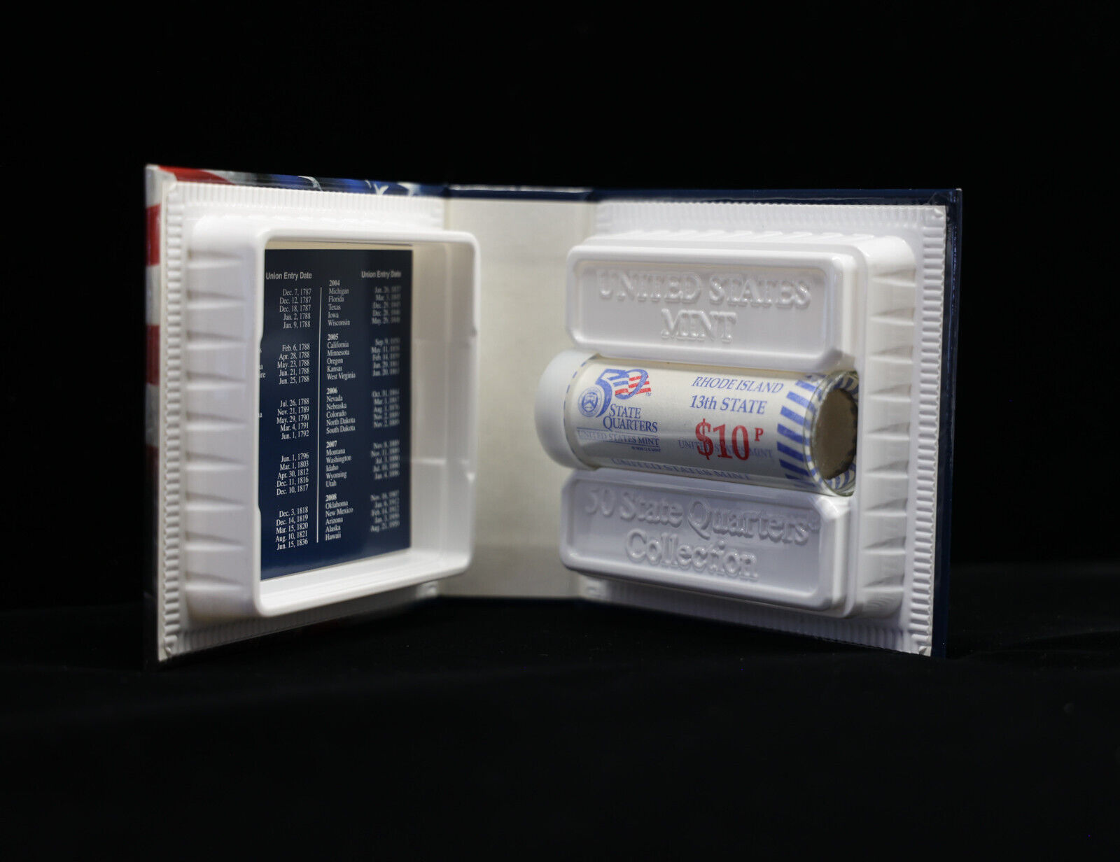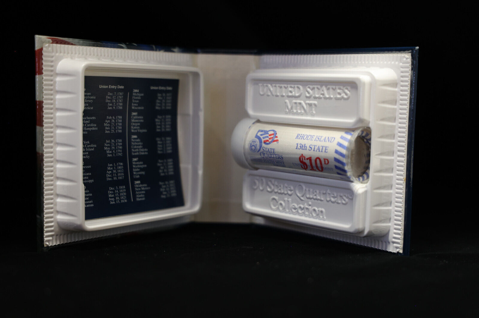 For sale is a 2001 Rhode Island RI Quarter Roll 2 pc Set P & D Mint Bookshelf Display Storage Box. View pictures for details and condition. The set pictured is the exact set you will receive. Feel free to contact us with any questions.