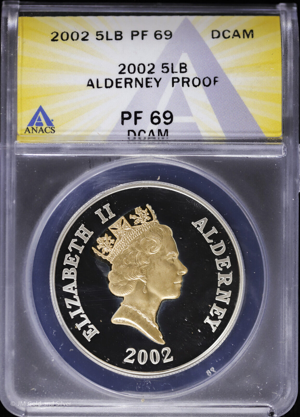 2002 5LB Alderney Proof Gilded Silver 5 Pounds ANACS PF 69 DCAM PR Deep Cameo
