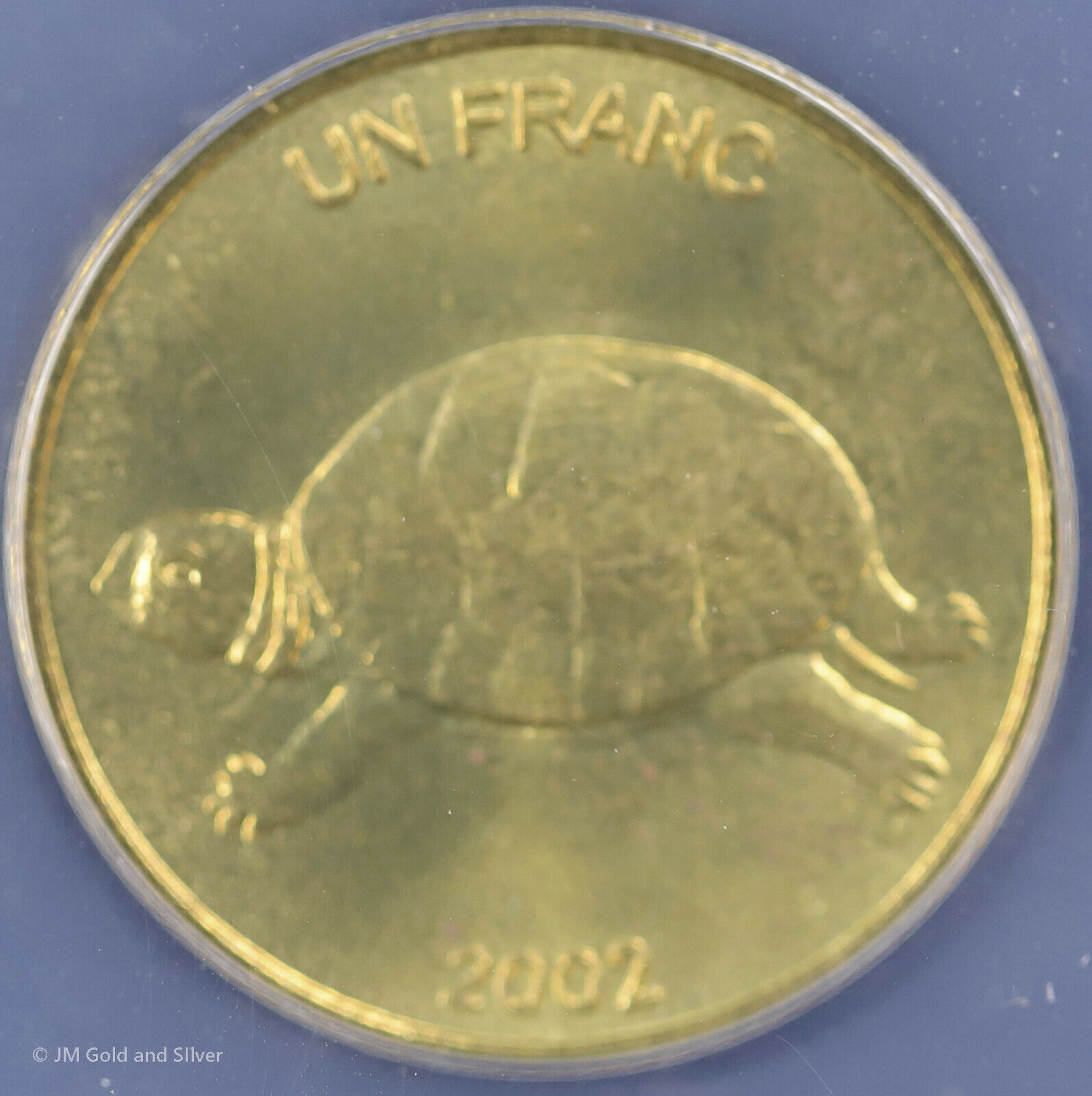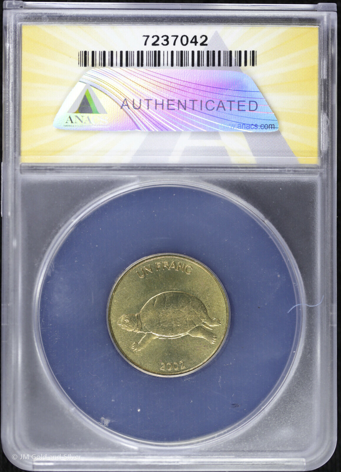 2002 Congo Democratic Republic 1 Franc Turtle Lion ANACS MS 65 | 1-Yr Type