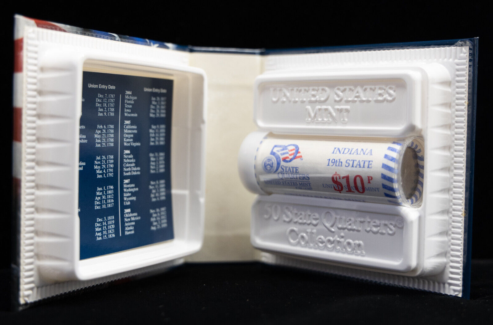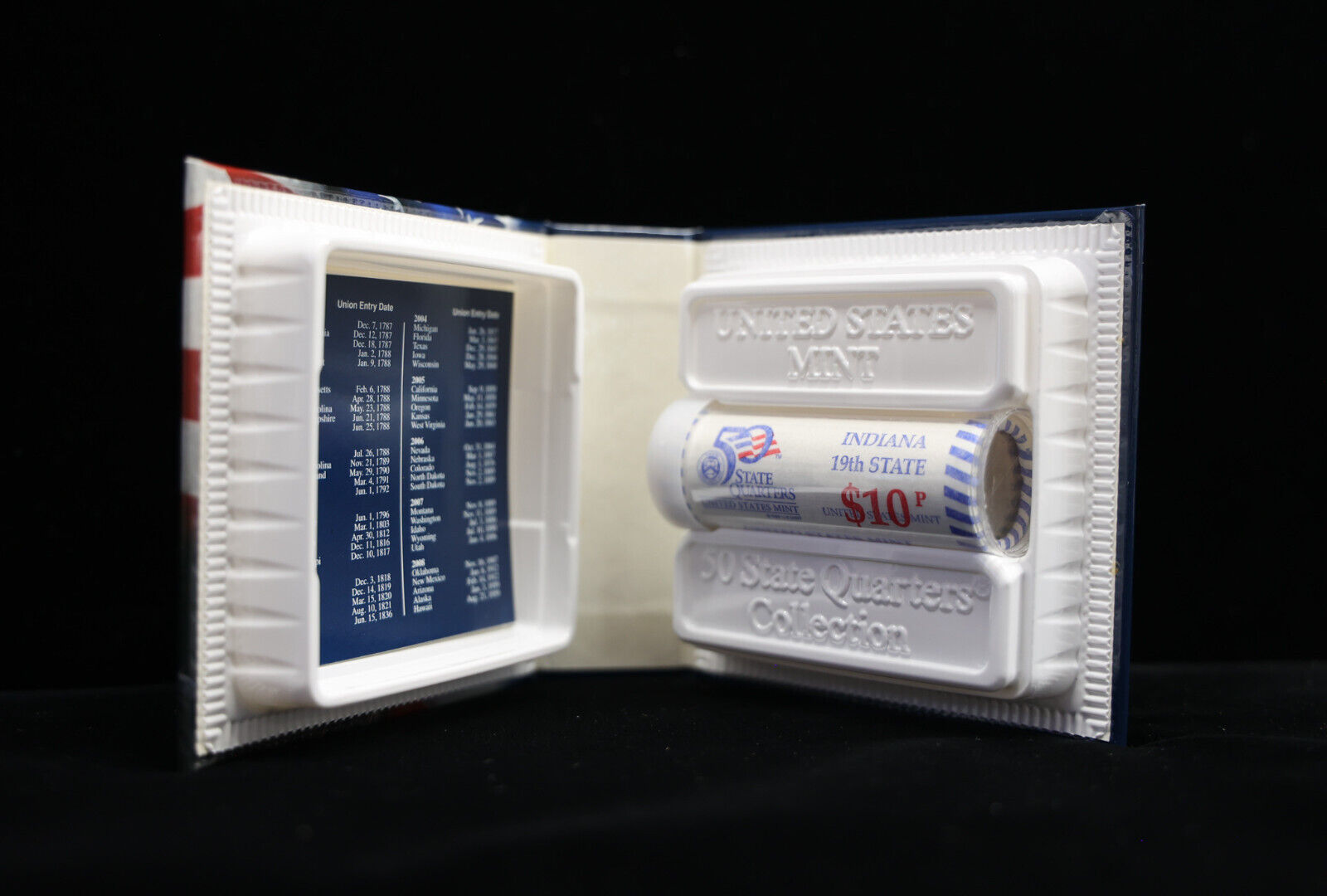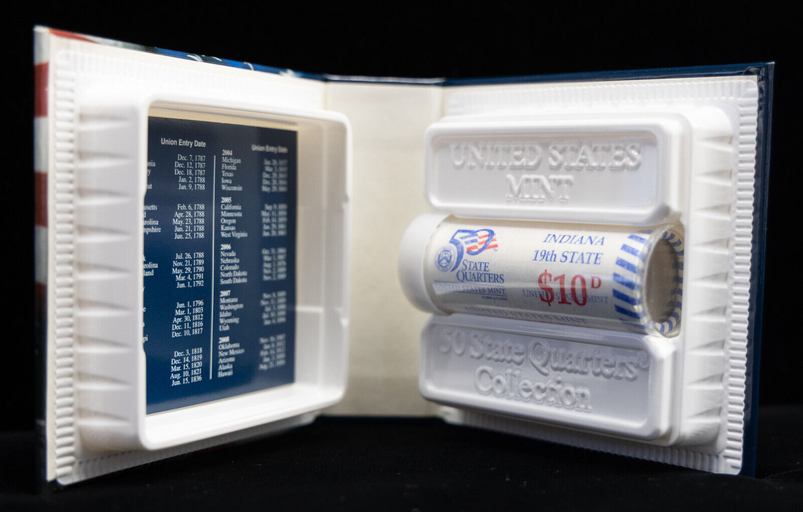 For sale is a 2002 Indiana IN Quarter Roll 2 pc. Set P & D Mint Bookshelf Display Storage Box. View pictures for details and condition. The set pictured is the exact set you will receive. Feel free to contact us with any questions.