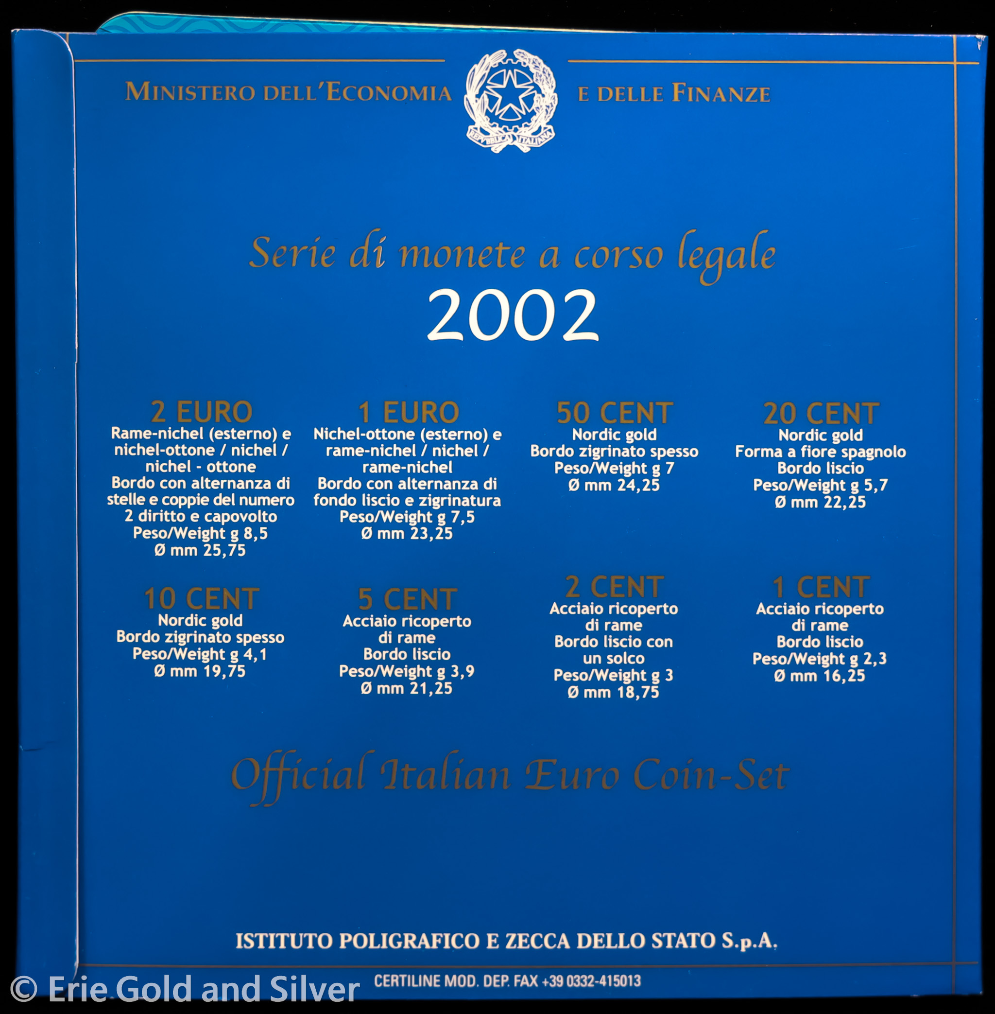 For sale is a 2002 Italy Official Italian Euro Coin Set in OGP.