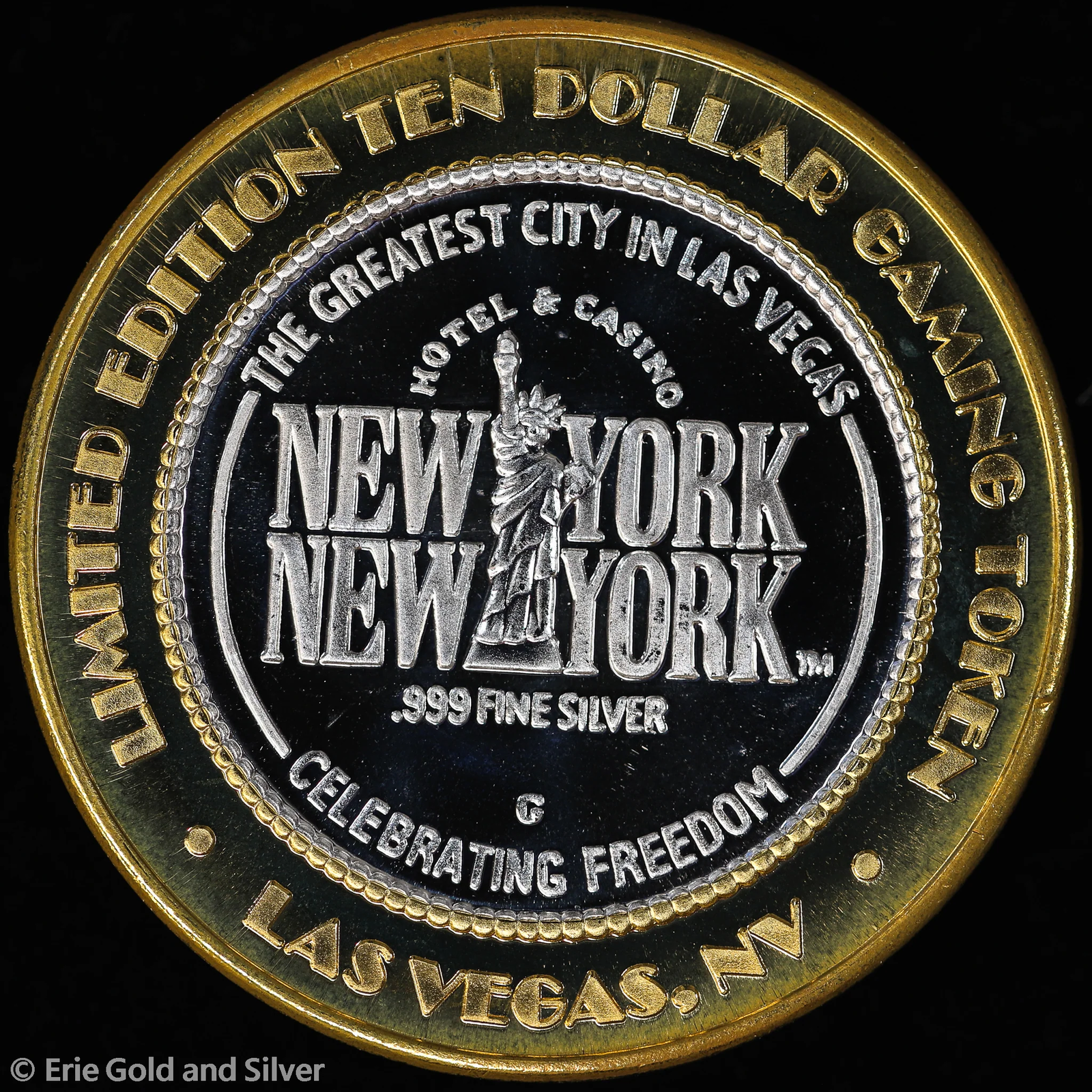 2002 Las Vegas NV $10 Casino .999 Silver Strike New York NY Statue of Liberty