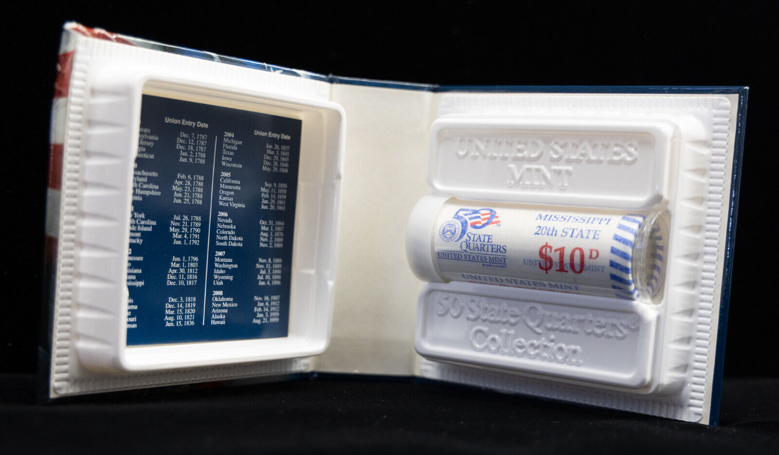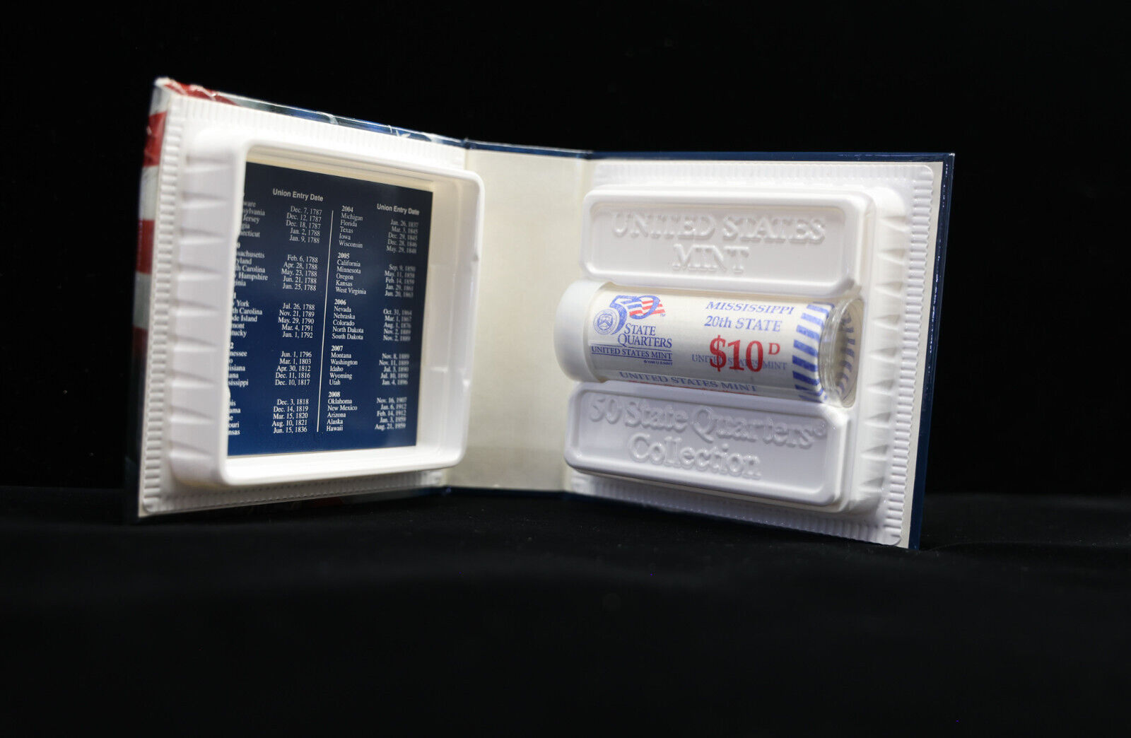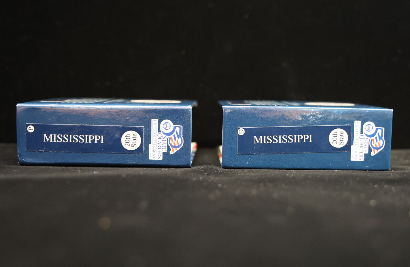 For sale is a 2002 Mississippi MS Quarter Roll 2 pc. Set P & D Mint Bookshelf Display Storage Box. View pictures for details and condition. The set pictured is the exact set you will receive. Feel free to contact us with any questions.