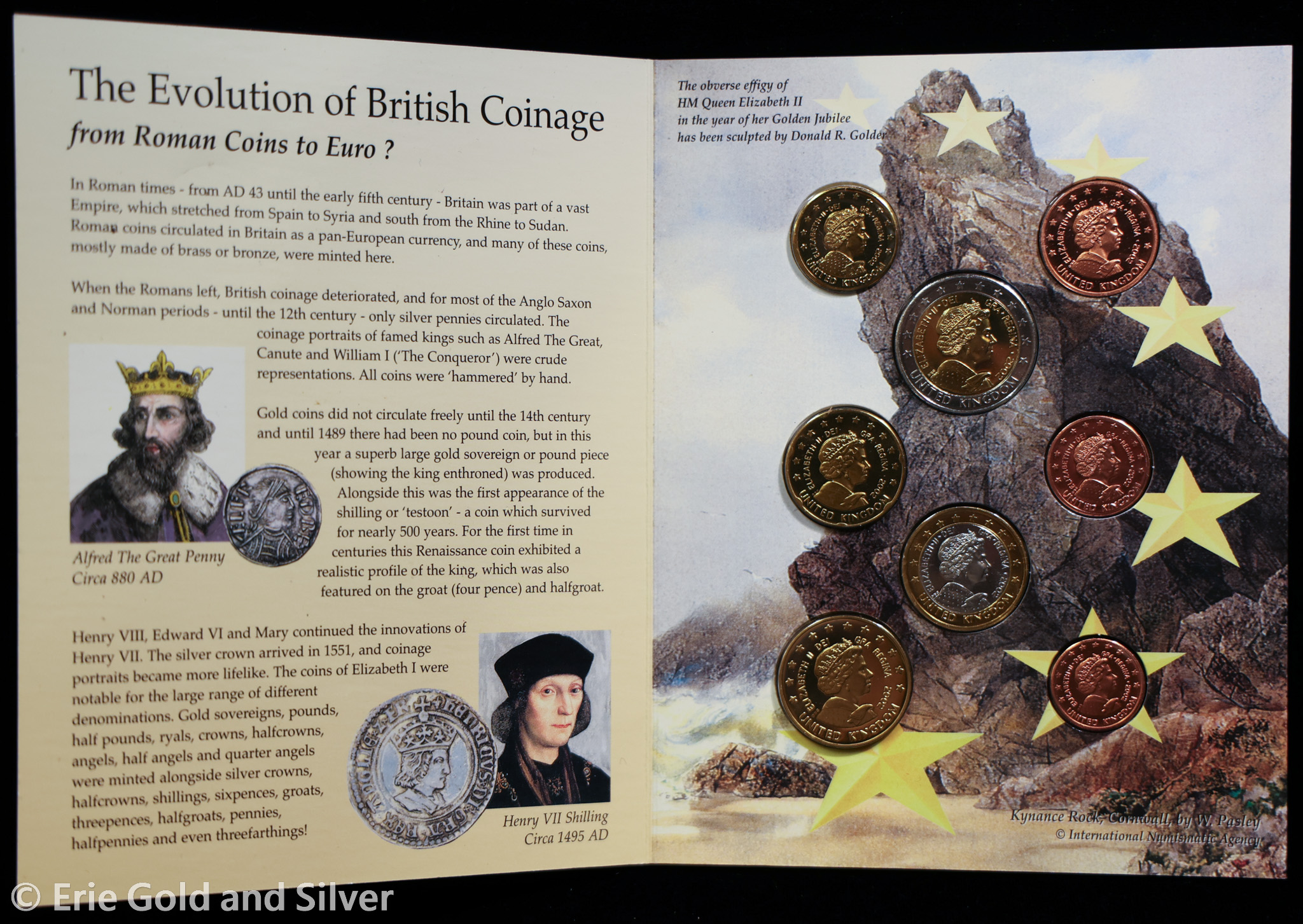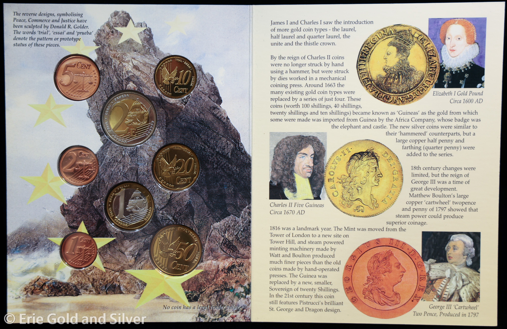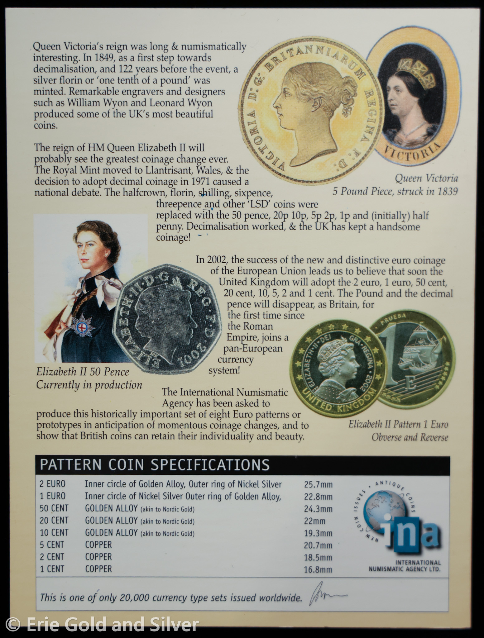 For sale is a 2002 UK Pattern or Prototype Collection Euro 8-Coin Set in OGP.