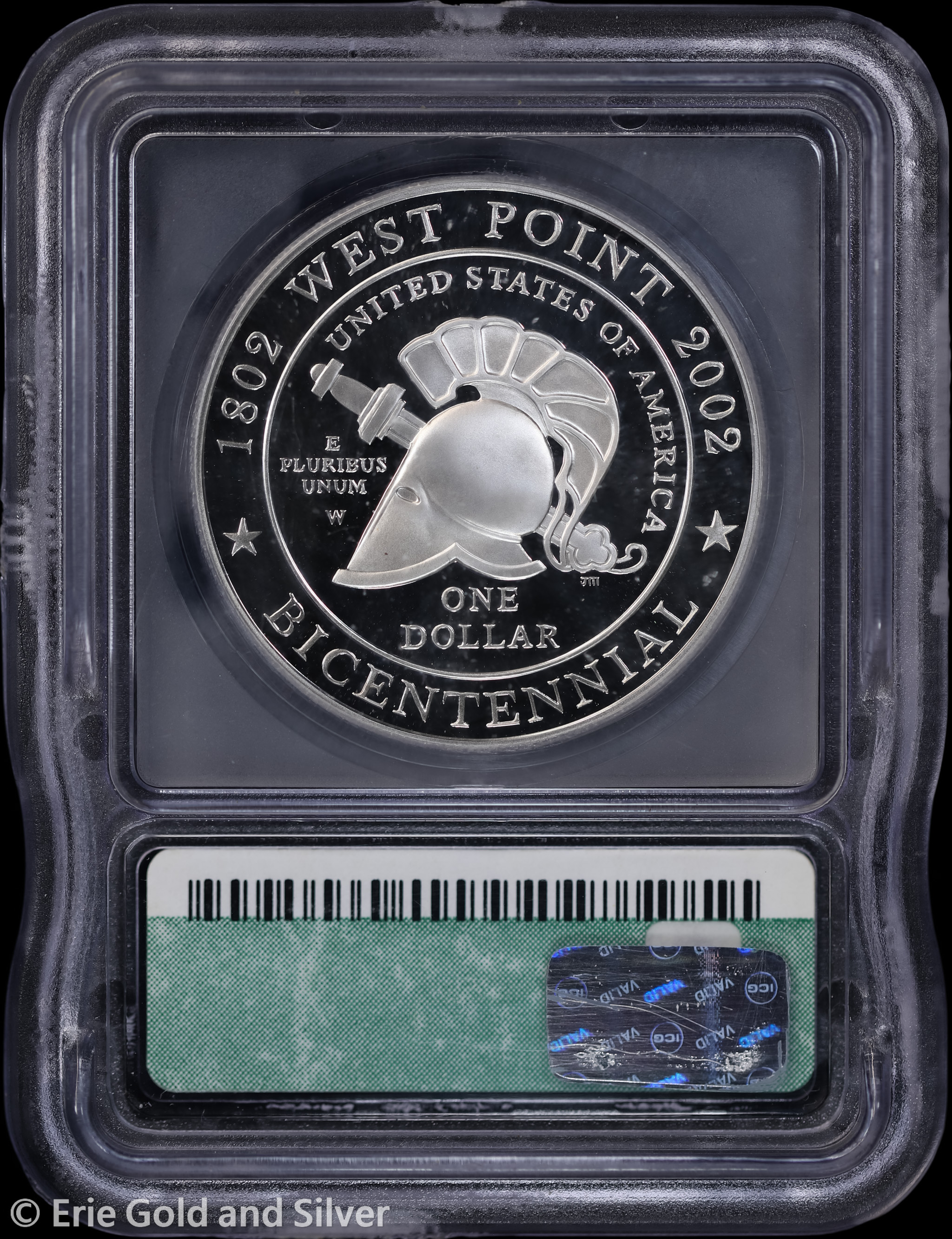 2002-W Proof West Point Bicentennial Commemorative Silver Dollar ICG PR 70 DCAM