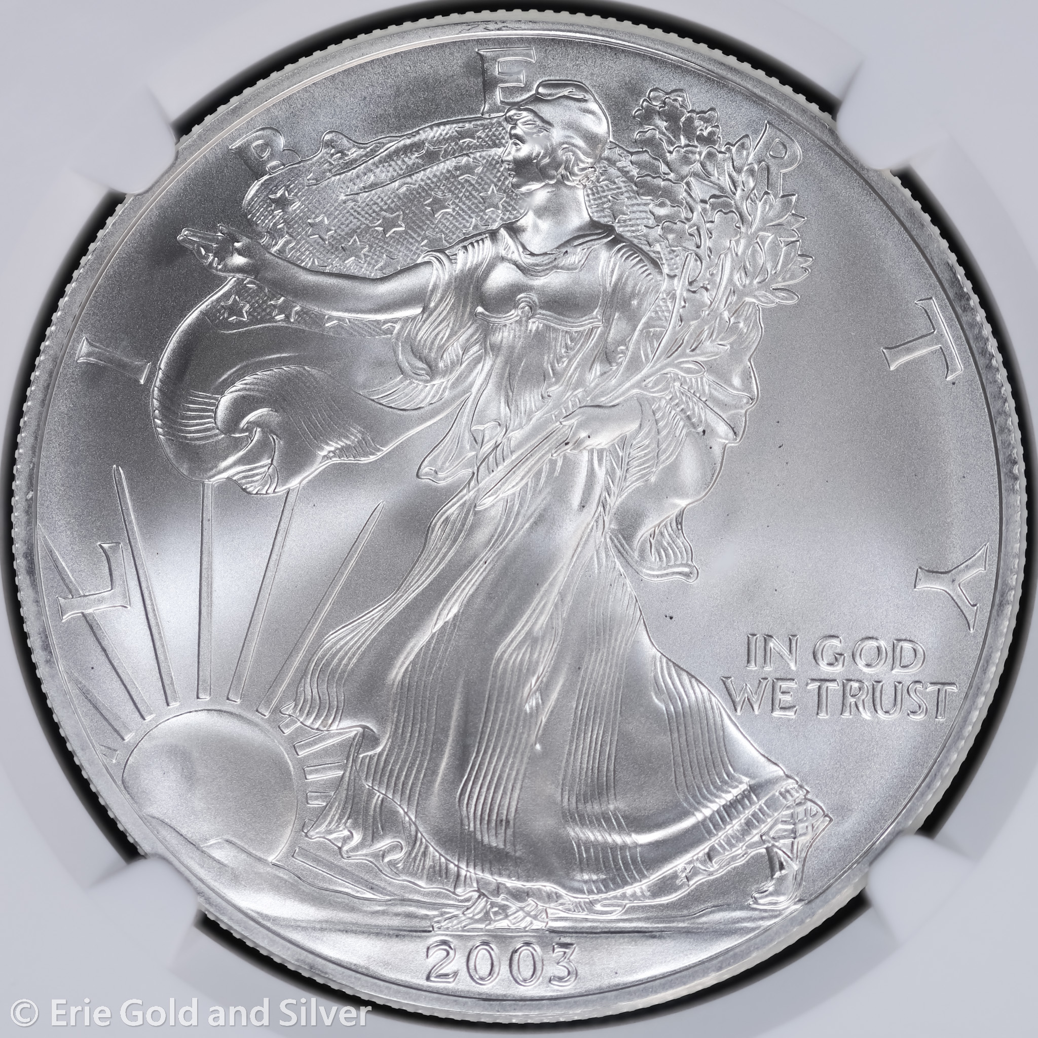 For sale is a 2003 American Silver Eagle. Certified / graded by NGC at MS 70.