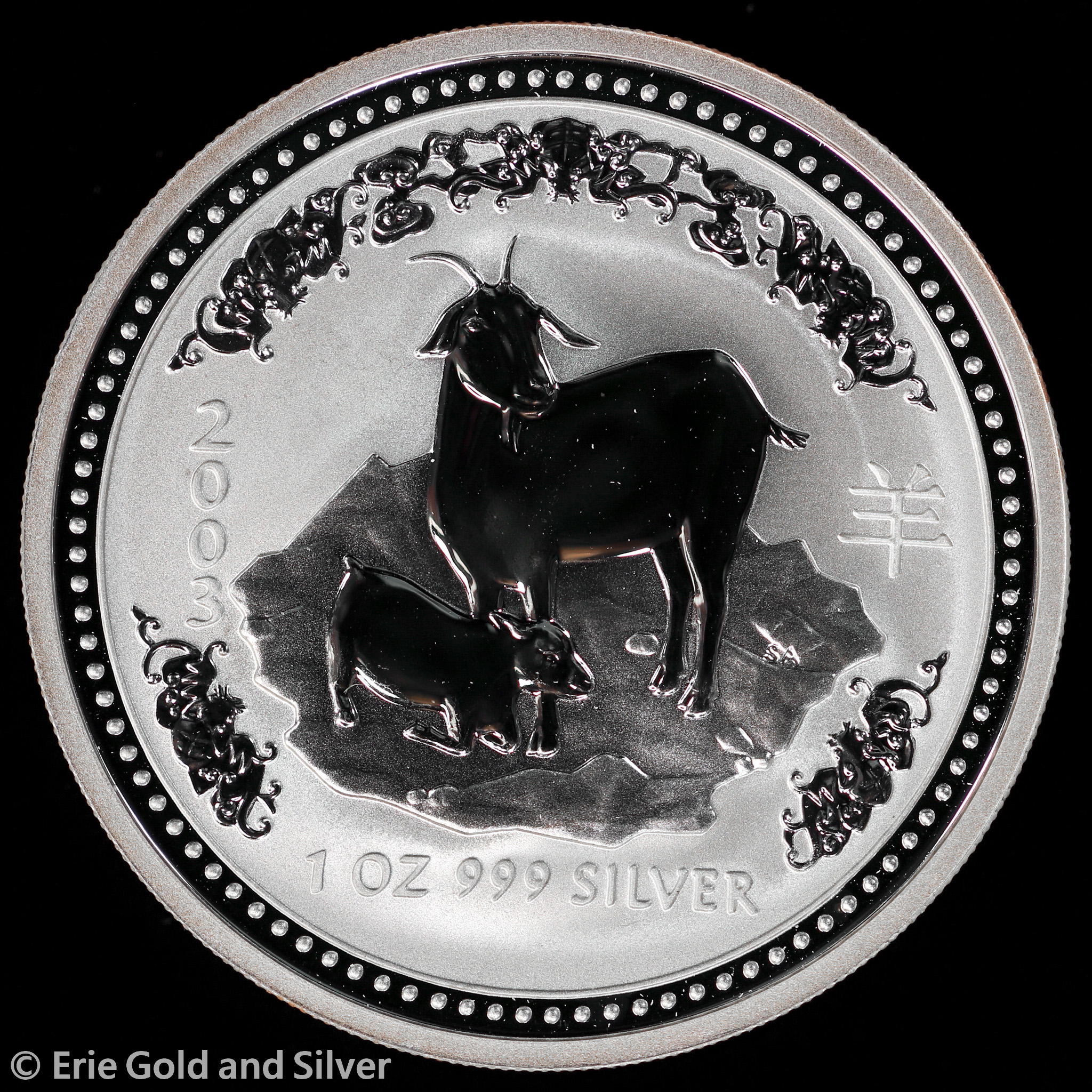 For sale is a 2003 $1 Australia Lunar Series 1 Year of the Goat 1 oz Silver Coin.