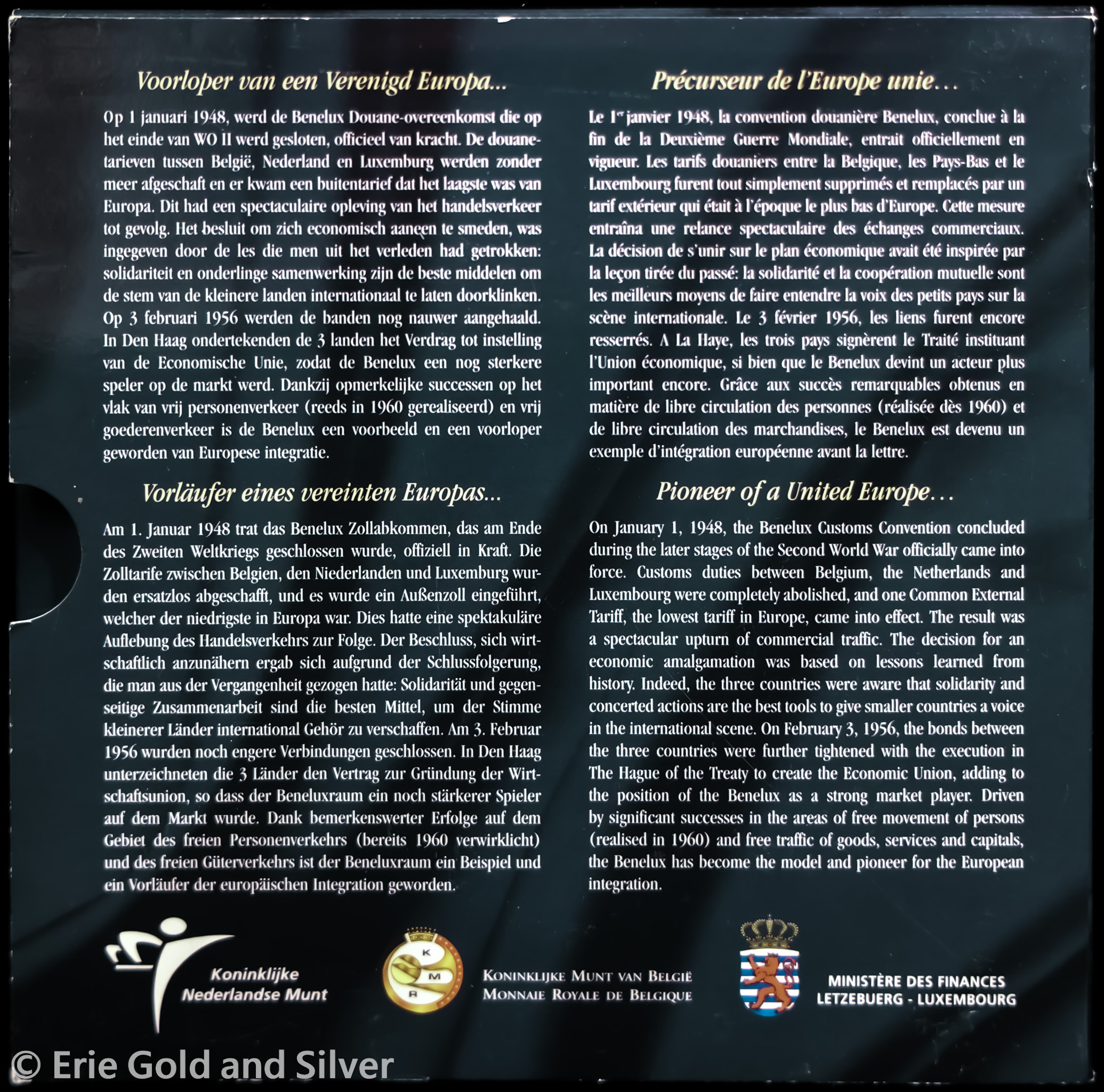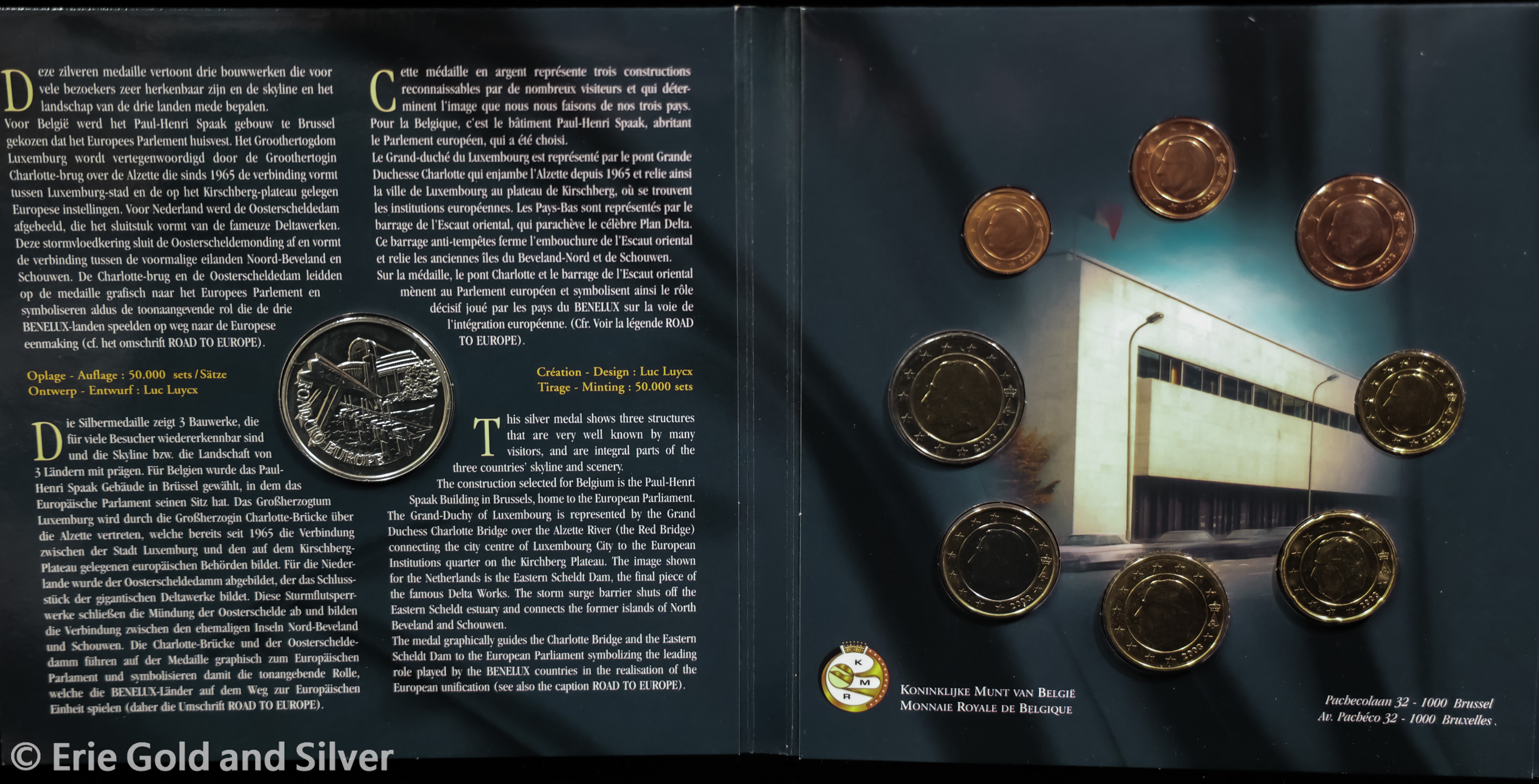For sale is a 2003 Benelux (Netherlands, Belgium, Luxembourg) Silver Medal & Euro Set in OGP.