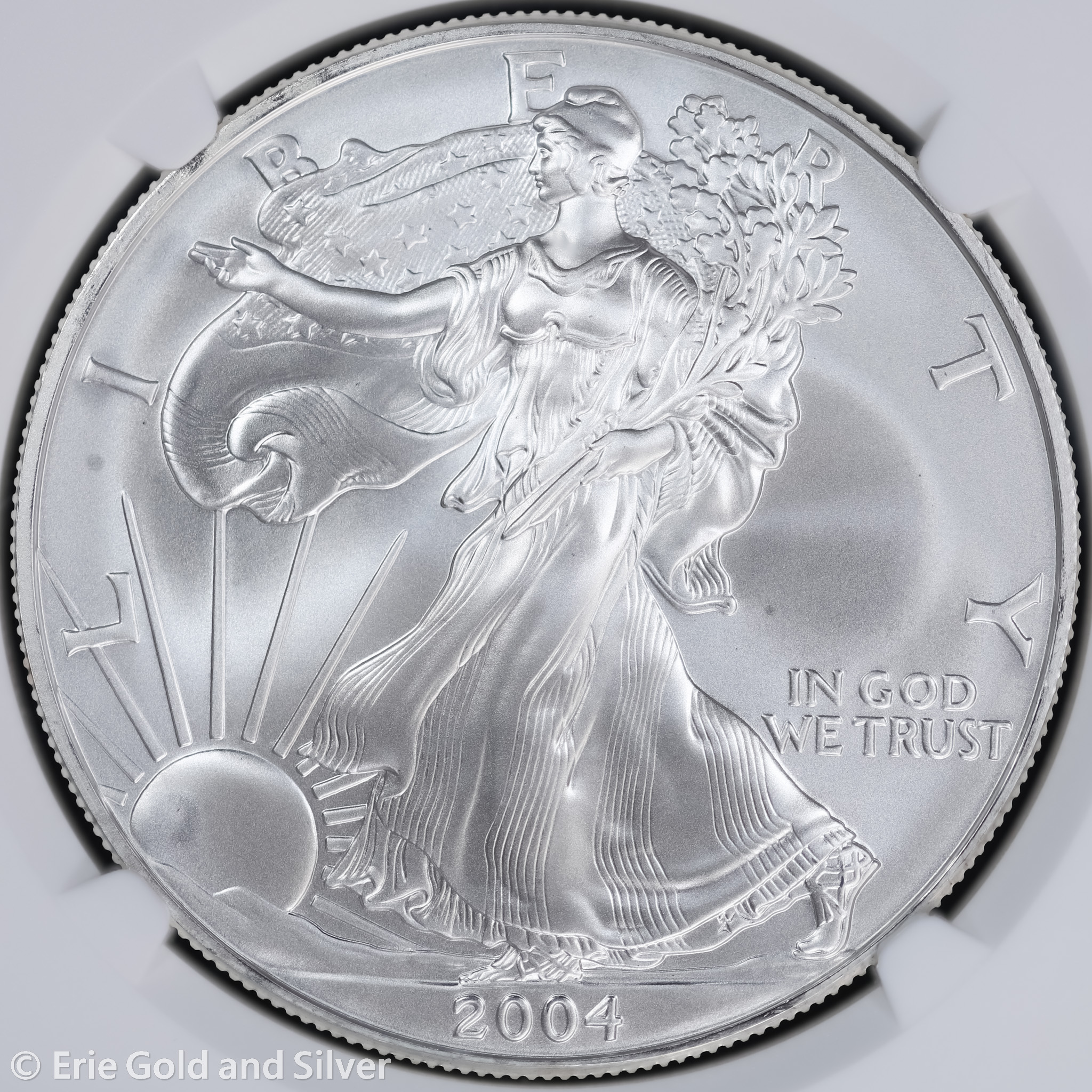 For sale is a 2004 American Silver Eagle. Certified / graded by NGC at MS 70.