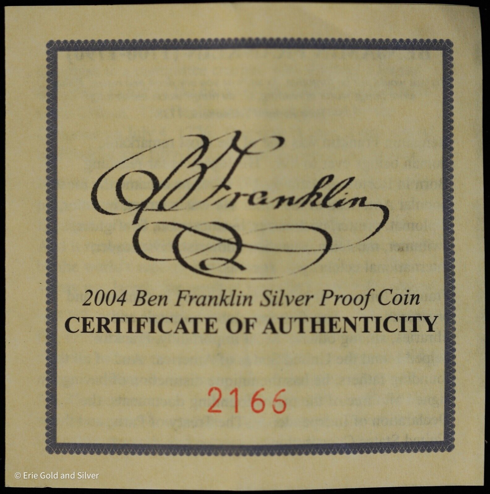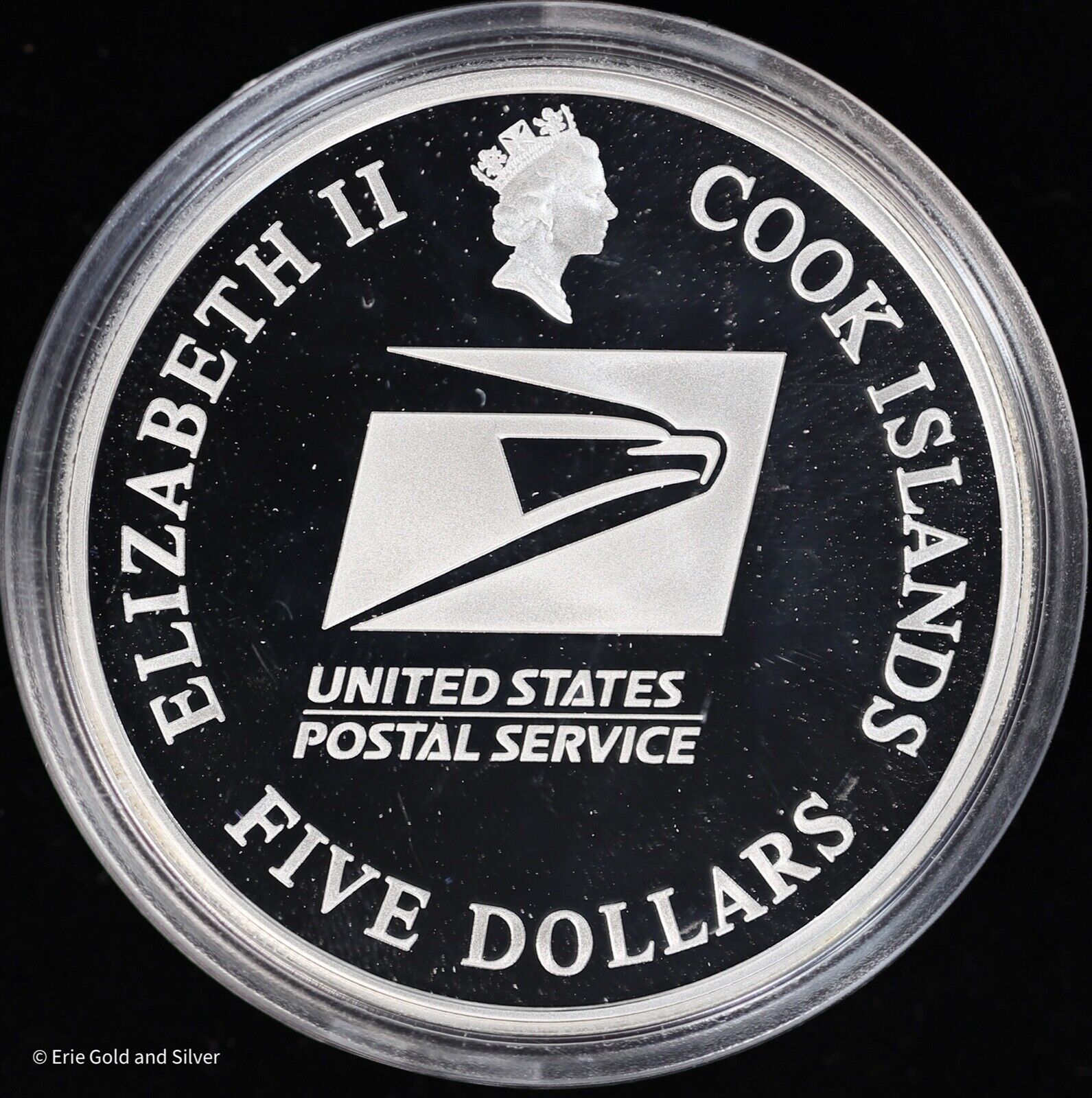 2004 $5 Ben Franklin USPS 5c Stamp Cook Island Proof coin 1 oz .999 Silver & COA