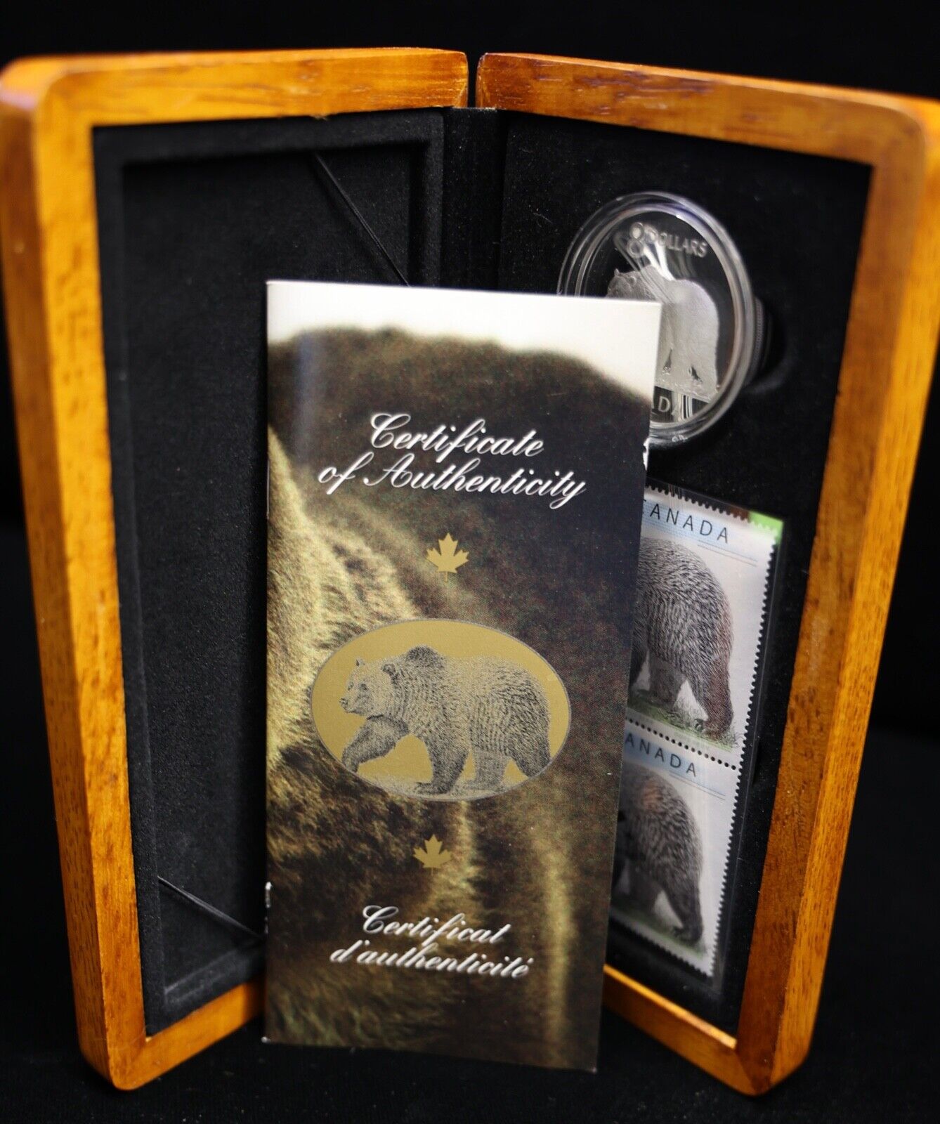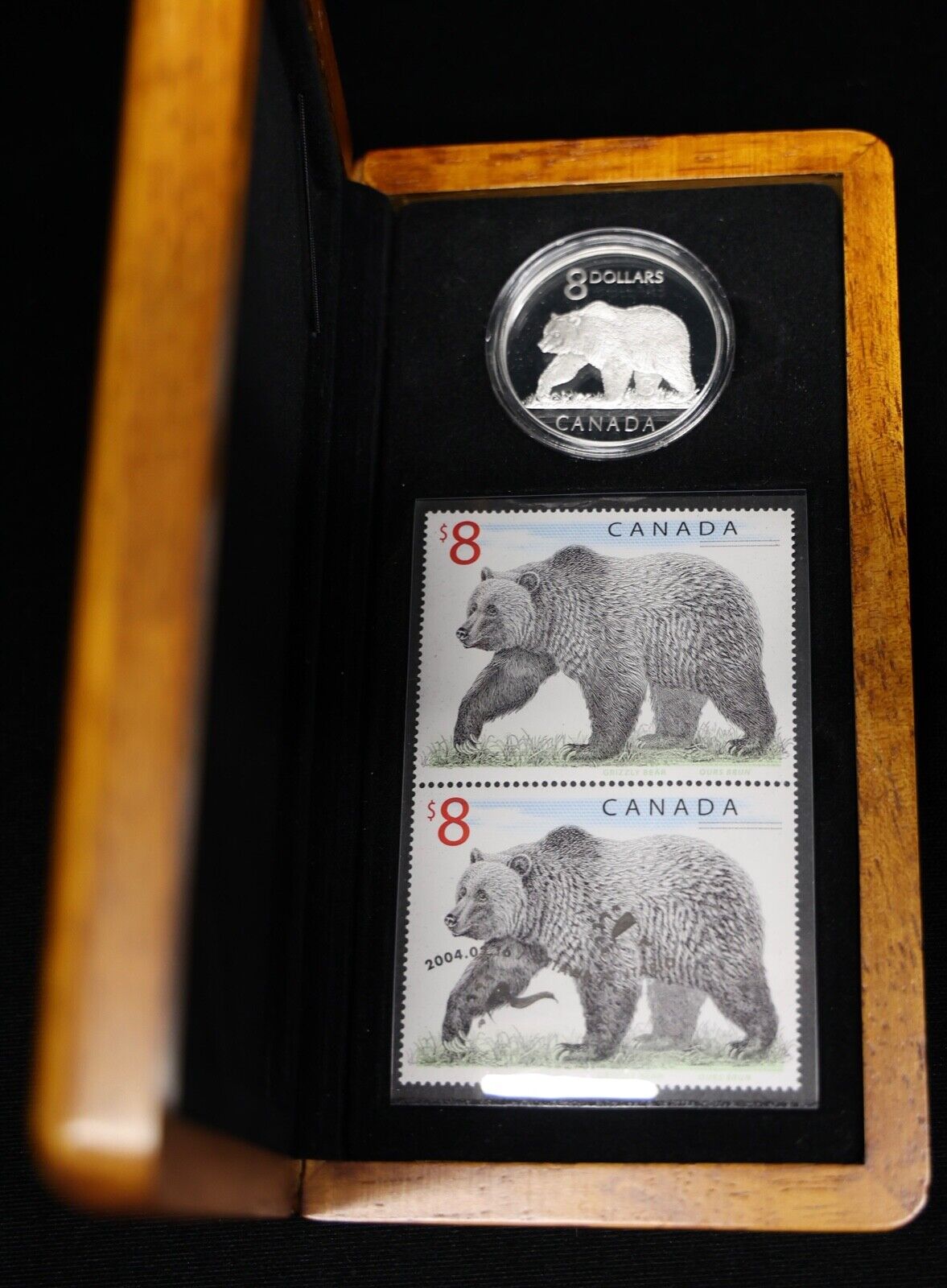 2004 Canadian $8 Silver Coin & Stamp Set ~ The Great Grizzly w/ Box & COA