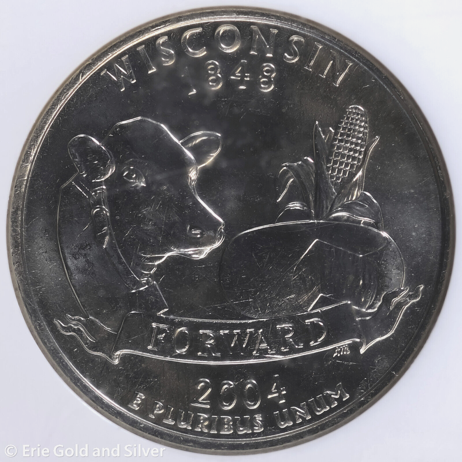 2004-D 25C Wisconsin State Quarter PCGS MS 66 | Error: Extra Leaf Low