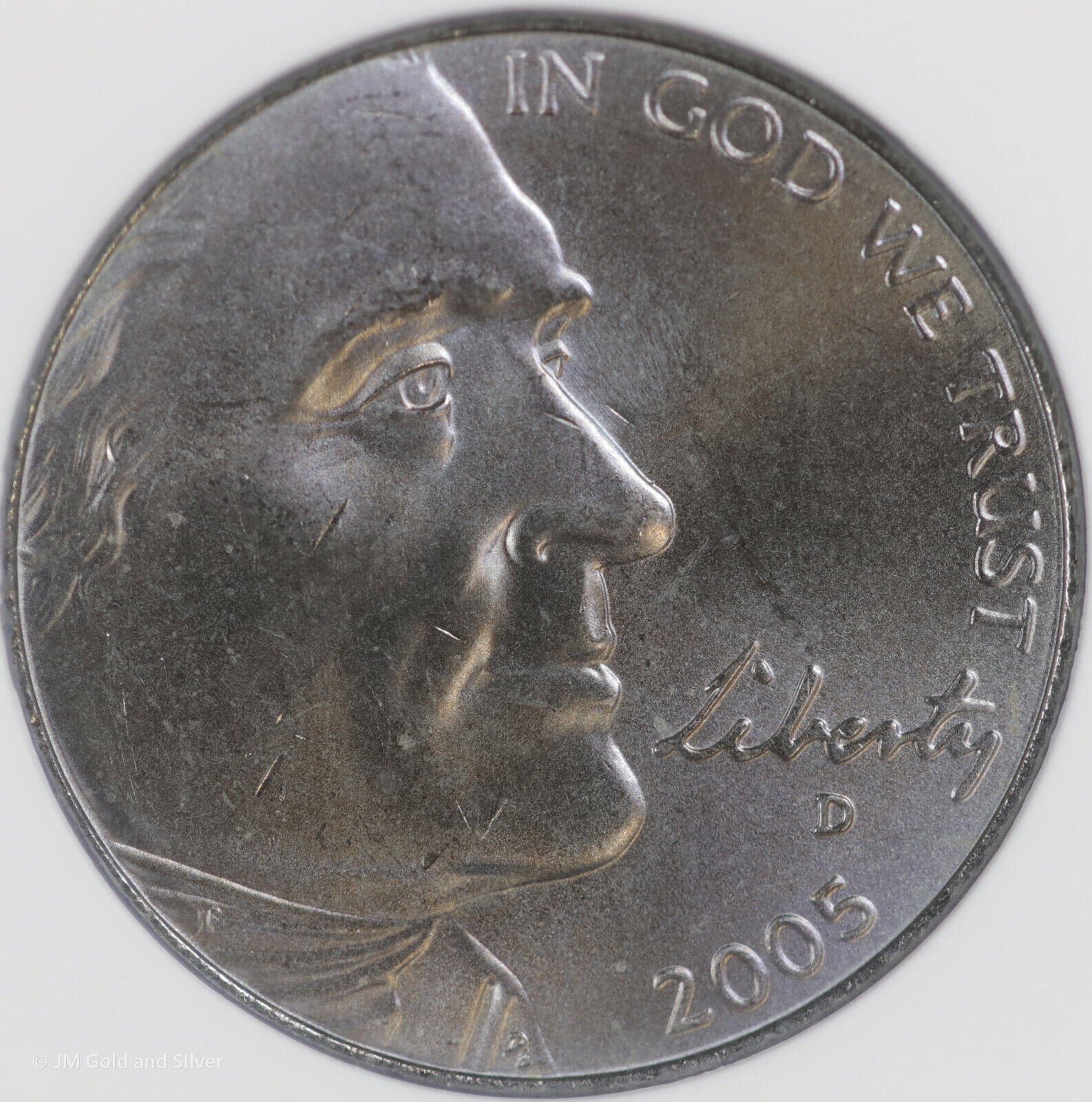 2005-D SMS Jefferson Nickel 5c Ocean View NGC MS 66 BU Uncirculated Toning Toned