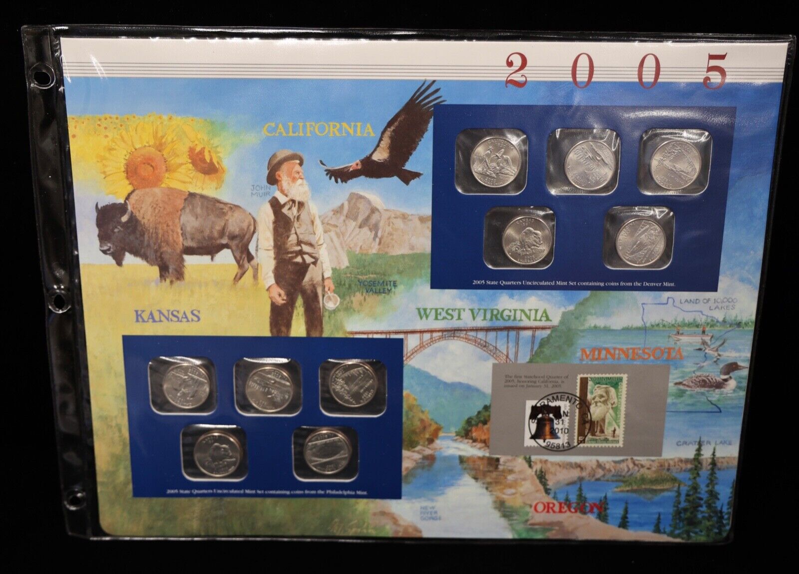 2005 P & D Uncirculated Mint Set Postal Commemorative Society Coins & Stamps