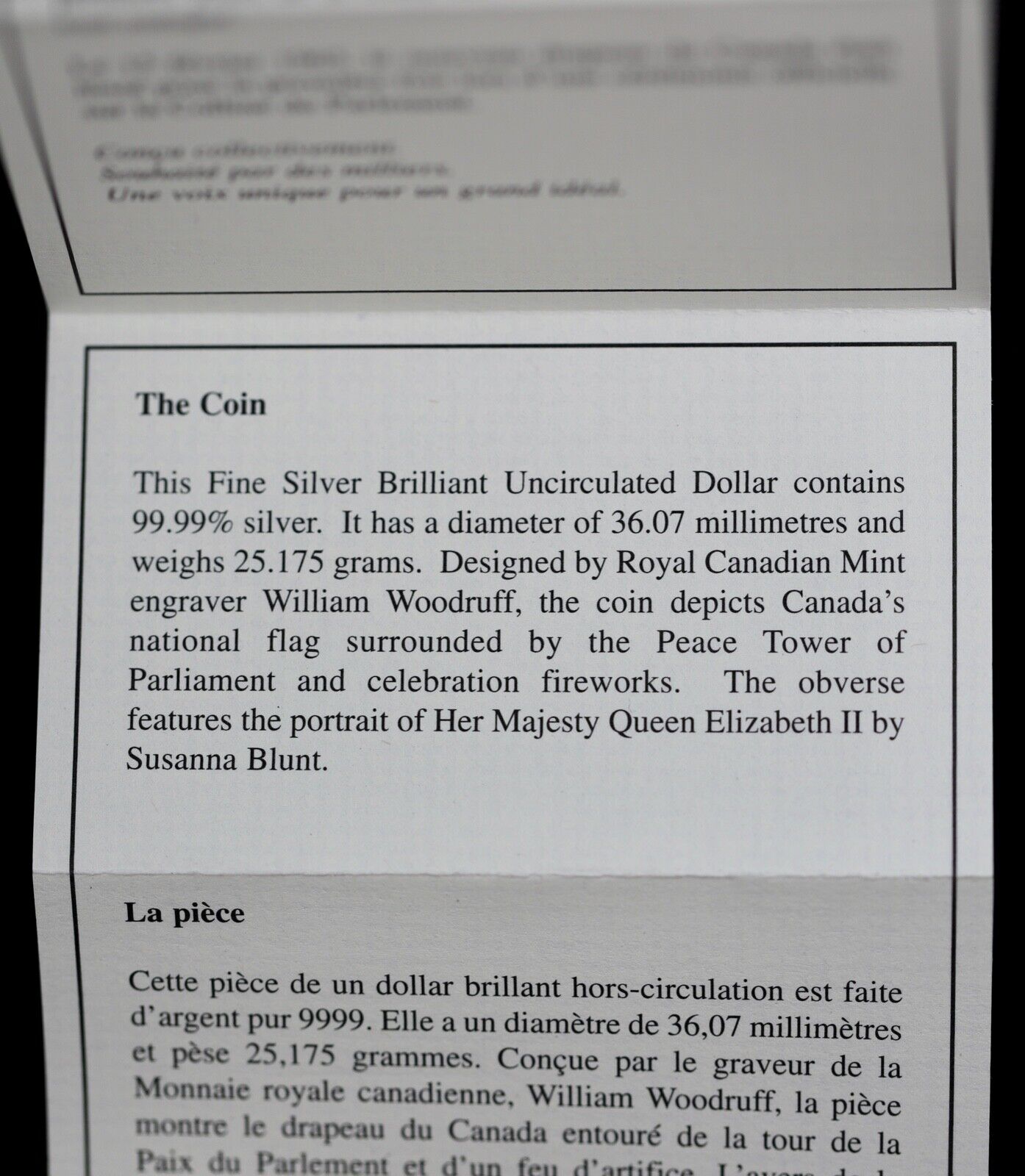 2005 Unc Silver Dollar 40th Anniversary of Canada National Flag w/ Box/COA