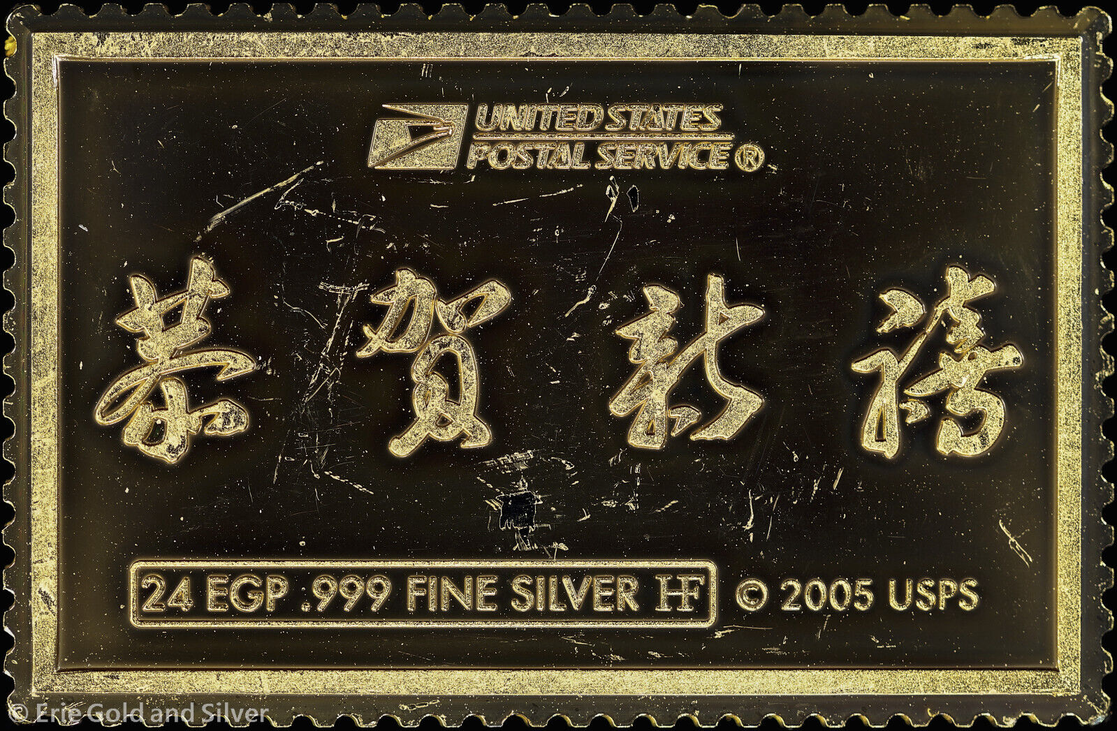 2005 USPS Lunar New Year Rooster 24K EGP .999 Silver Stamp Ingot