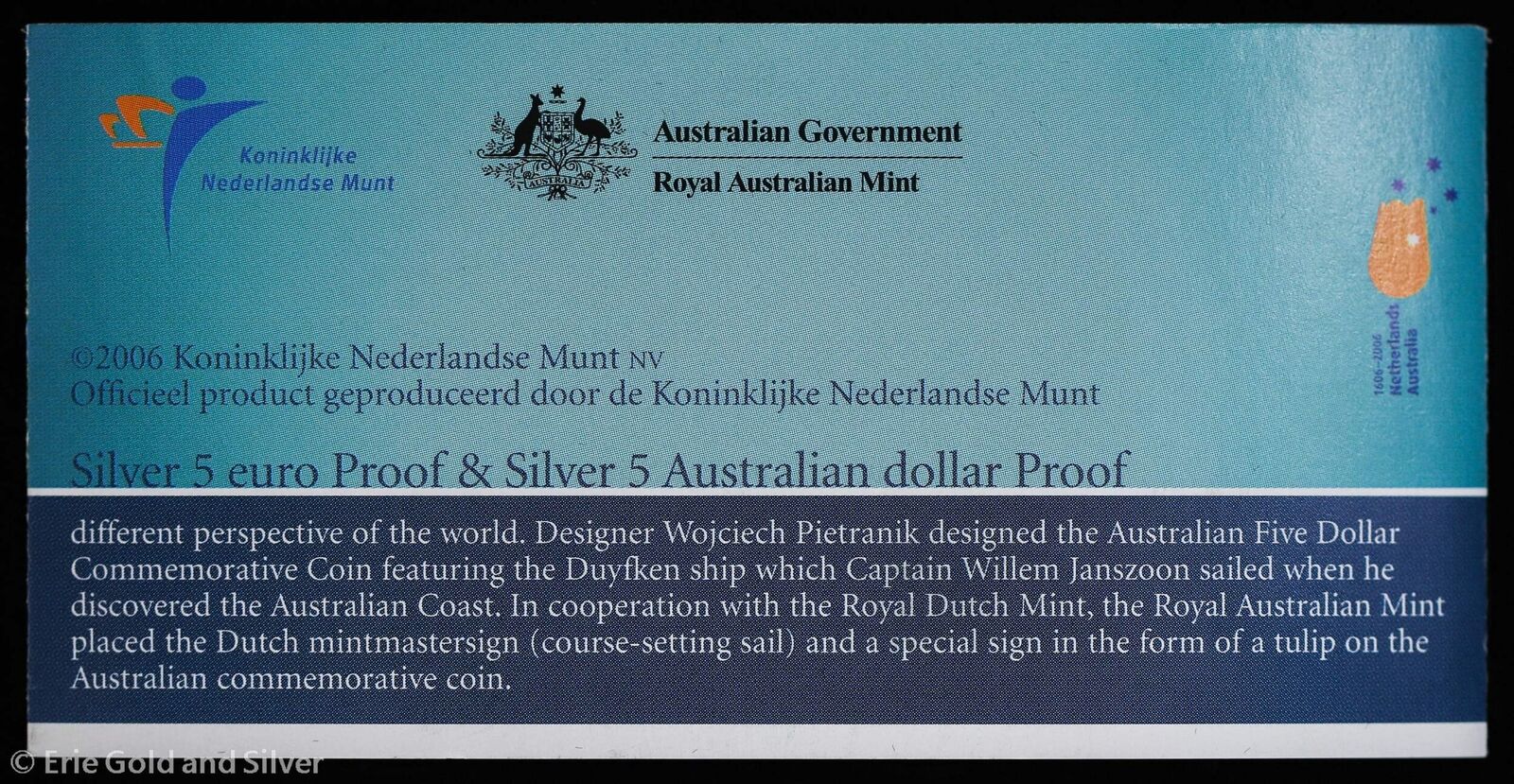 2006 $5/5€ Australia & Netherlands 400 Years Silver Proof Joint Issue 2 Coin Set