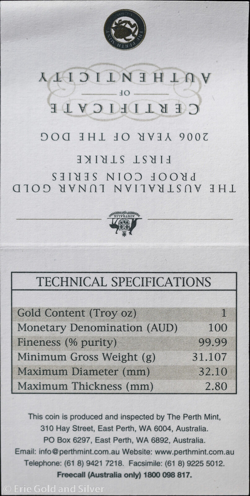 2006 Australia 1 oz Gold Proof Year of the Dog PCGS PR 70 DCAM | Top Pop 1 of 9