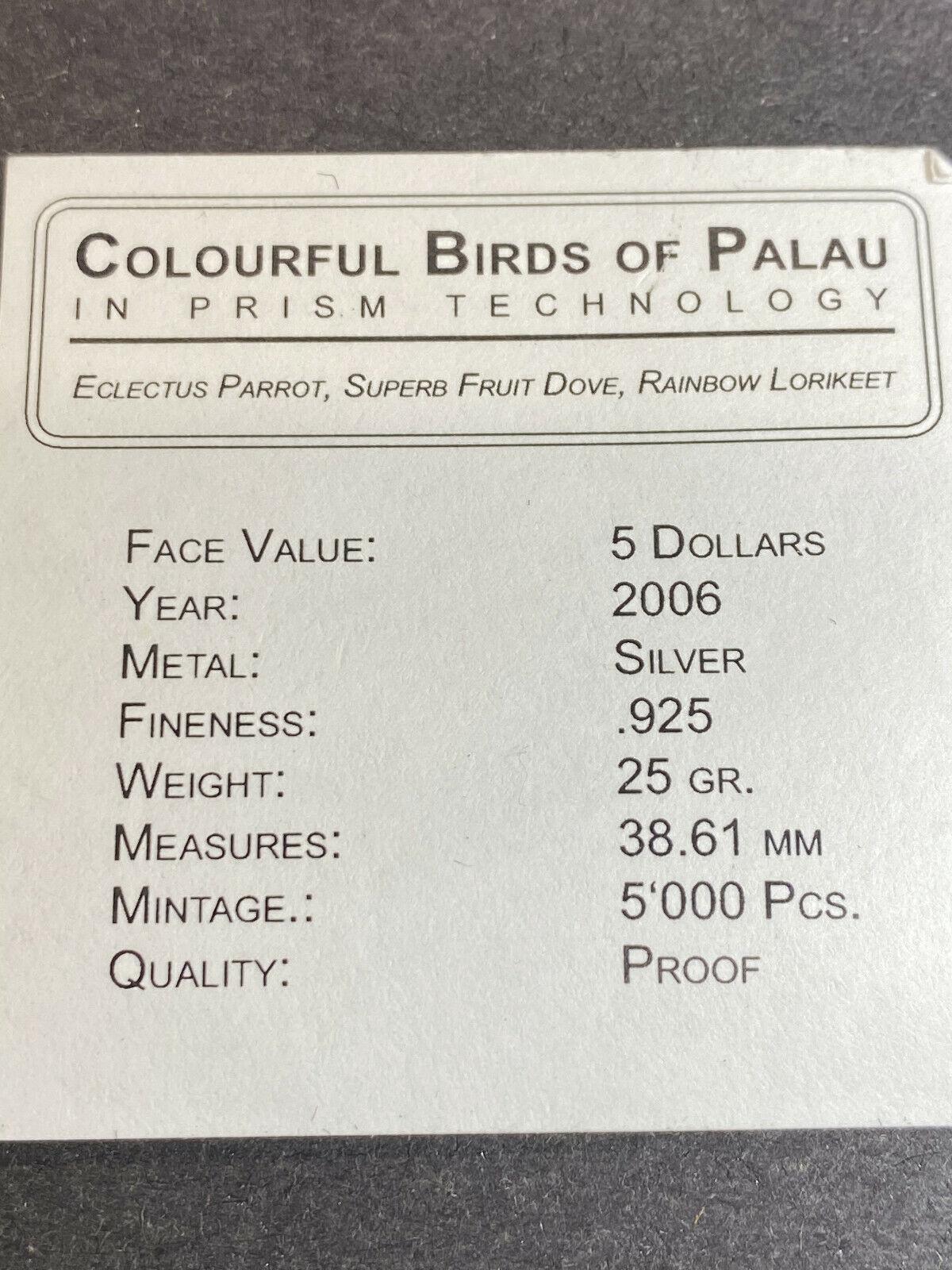 2006 Republic of Palau $5 Silver Colorized Coin Pacific Wildlife Lorikeet W/COA