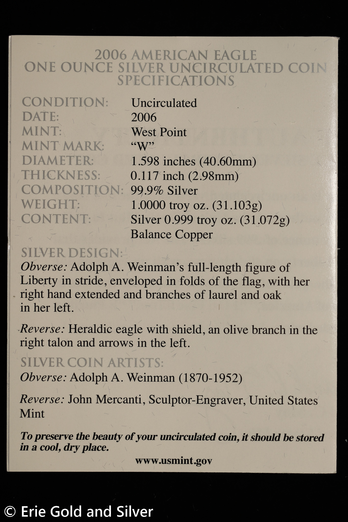 2006 Burnished Silver Eagle – 1 oz West Point Mint in Original Government Packaging