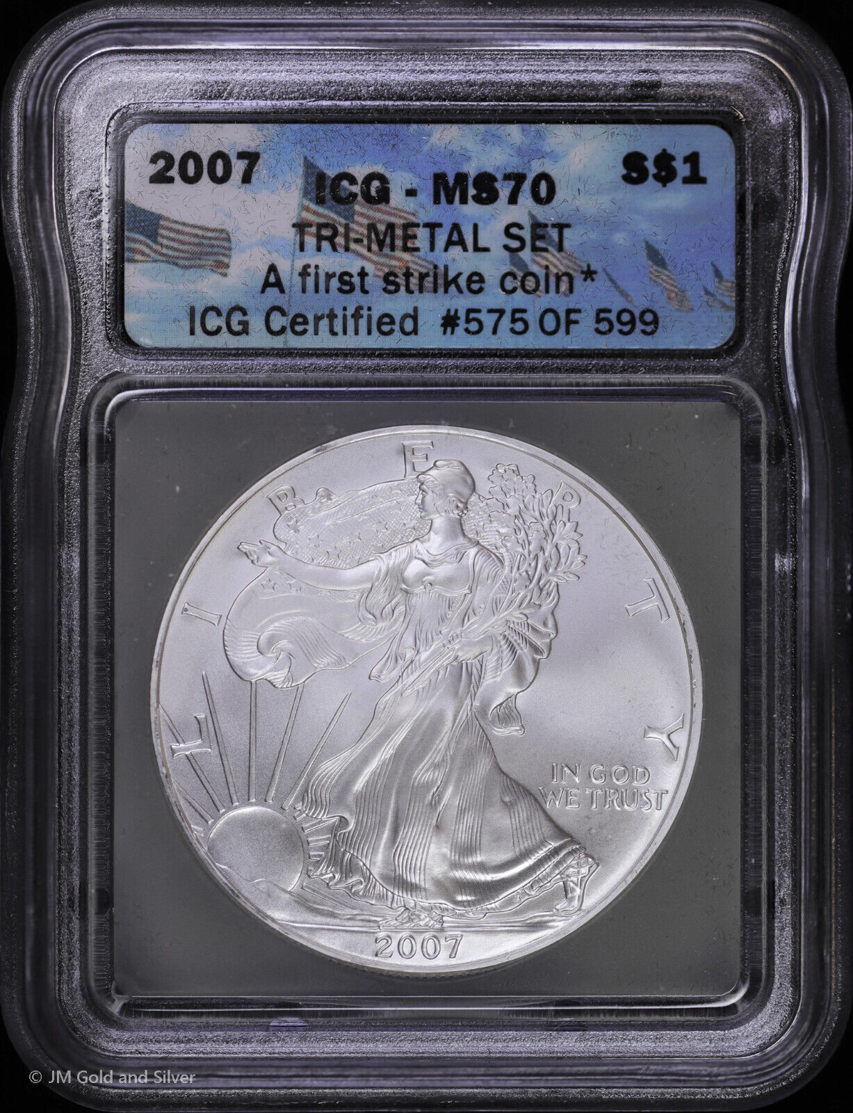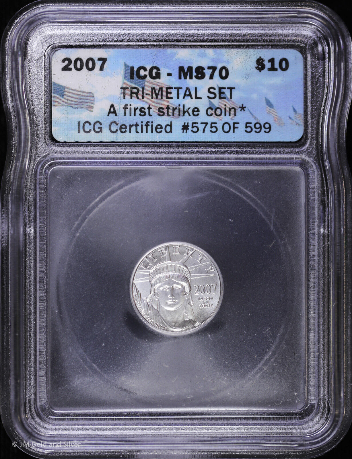 2007 American Eagle Tri-Metal 3-Coin Set Silver Gold & Platinum ICG MS 70 BU