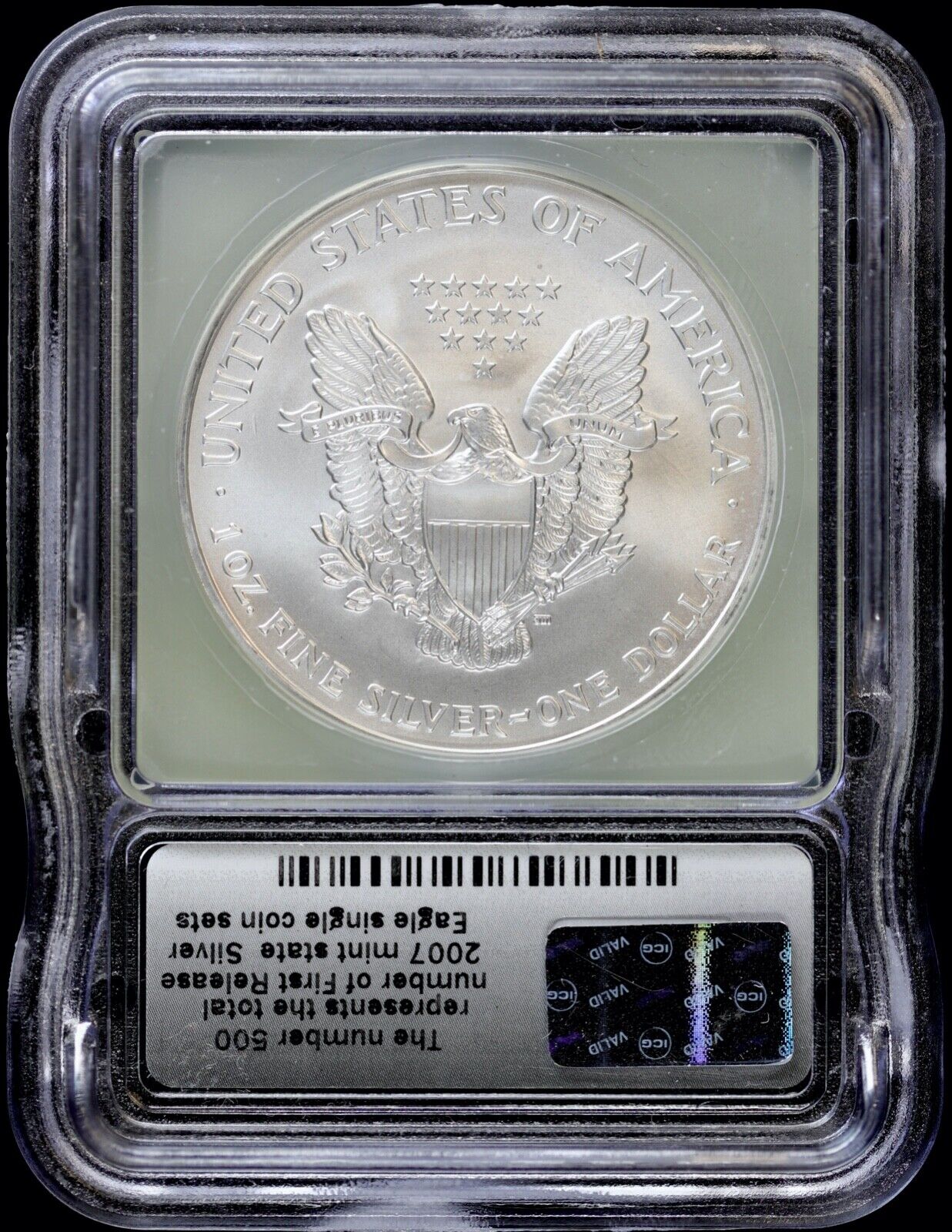 2007 American Silver Eagle Dollar $1 ICG MS 70 BU Uncirculated ASE First Release