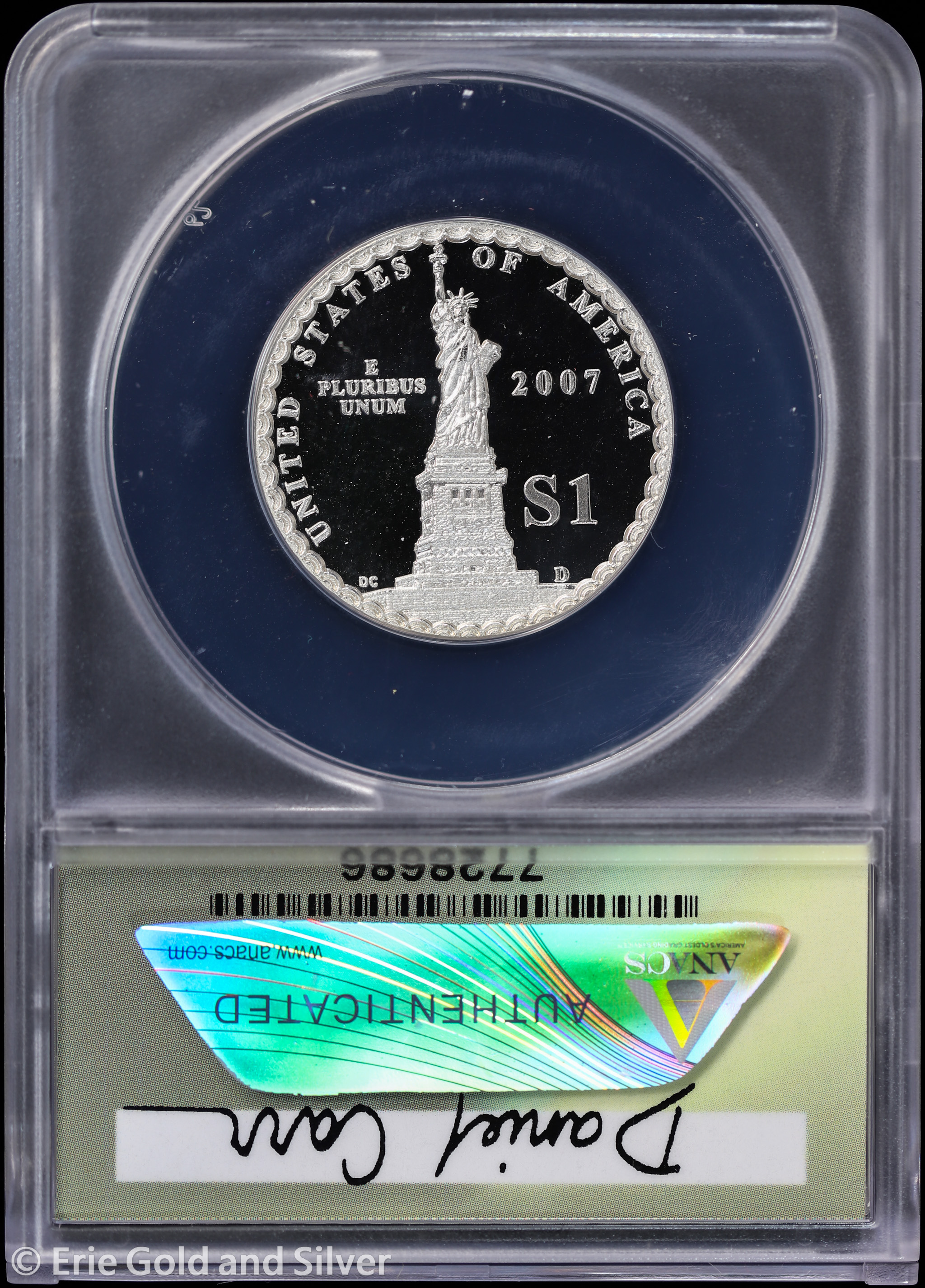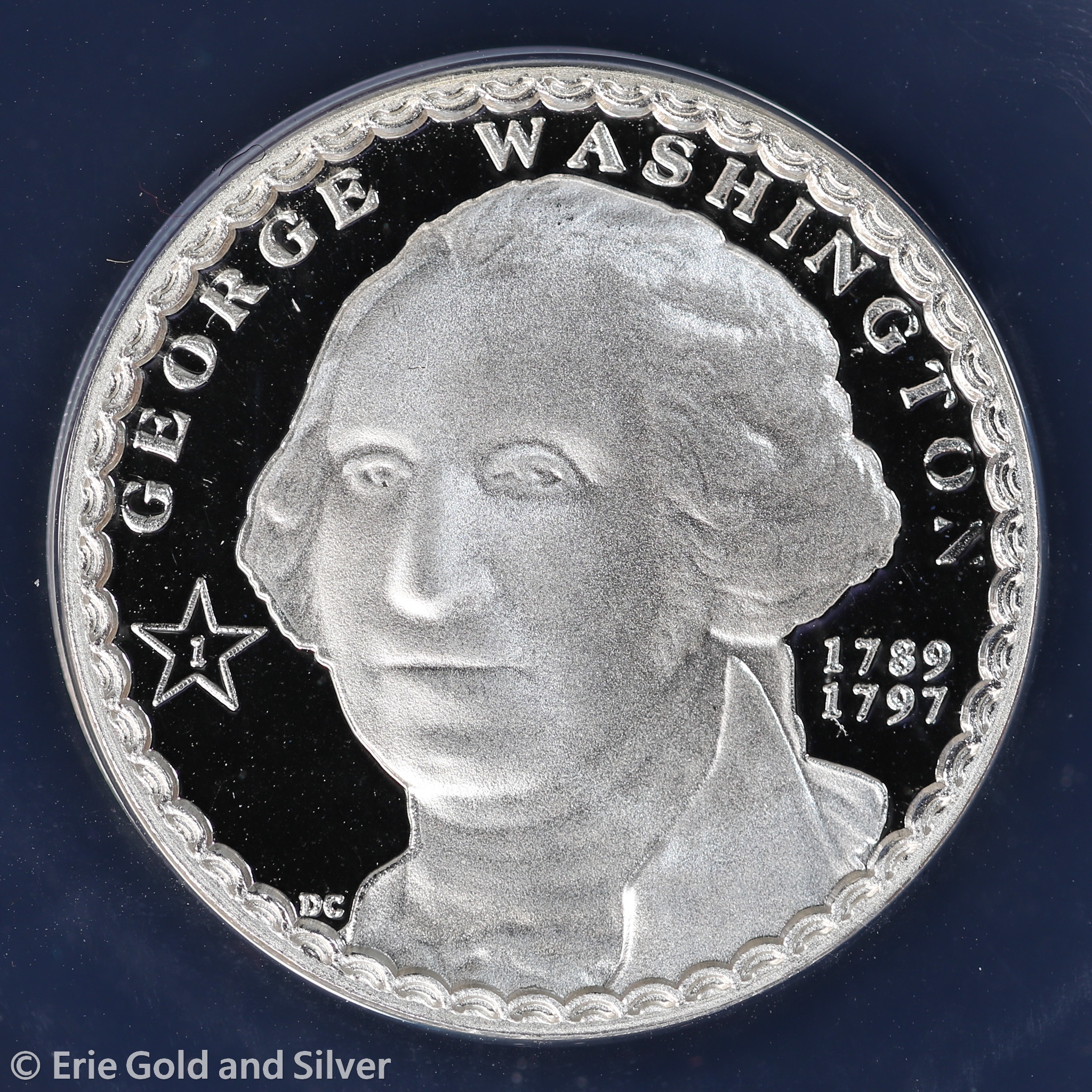 For sale is a 2007-D Daniel Carr Moonlight Mint George Washington Concept Dollar 1/2 oz Silver Proof-like Token with COA. Certified / graded by ANACS at MS 69 DCAM.