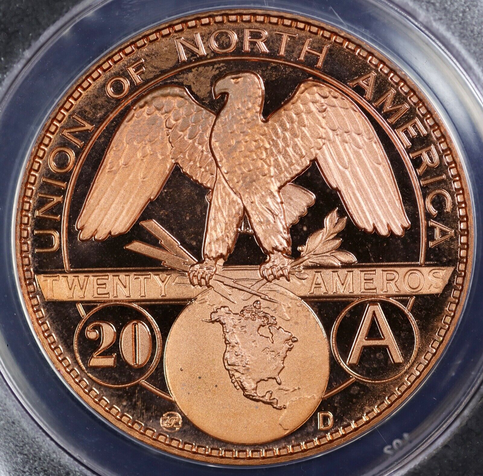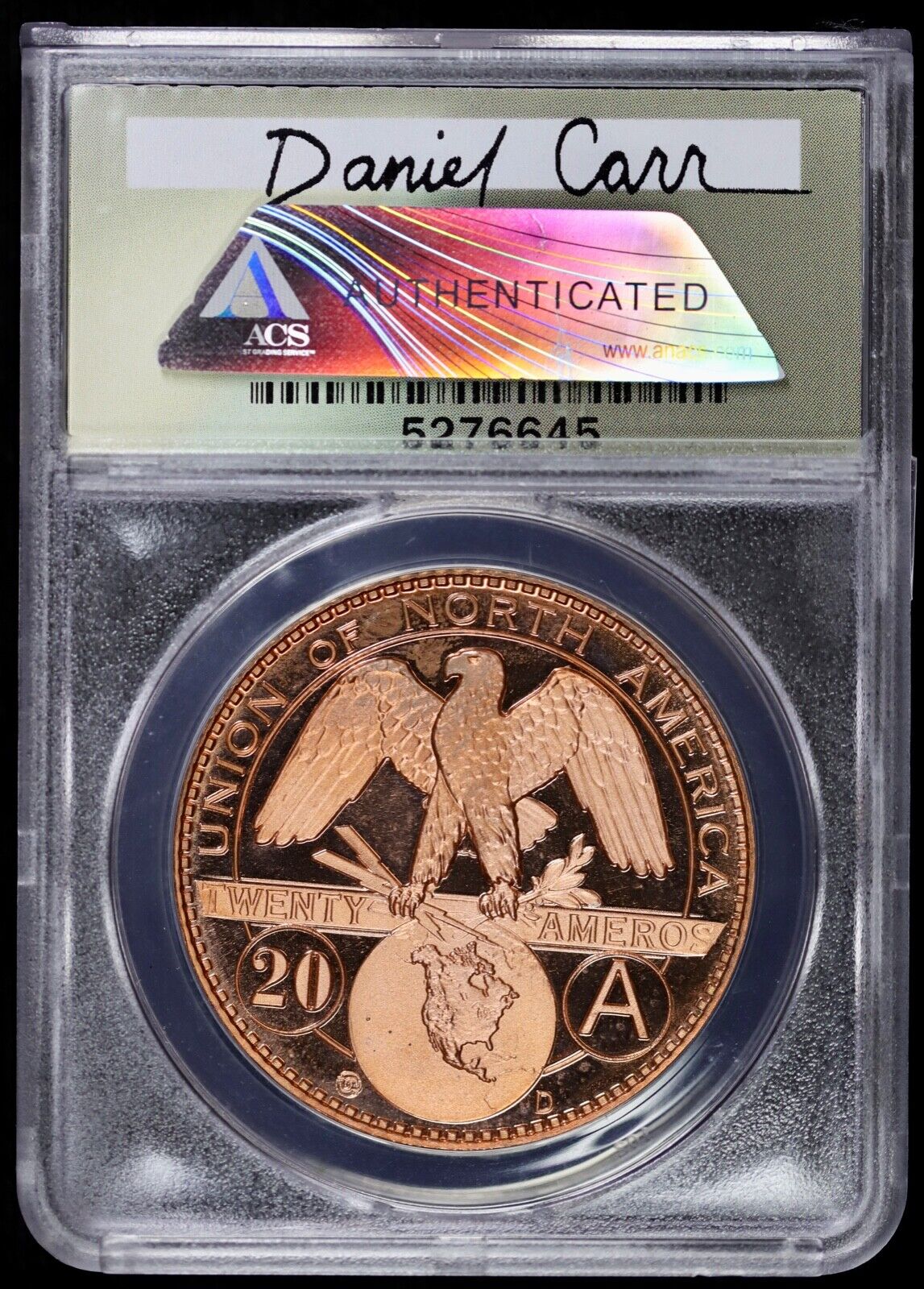 2007 D Token Dan Carr Moonlight Mint 20 Amero Seated Liberty PL ANACS MS68 DCAM