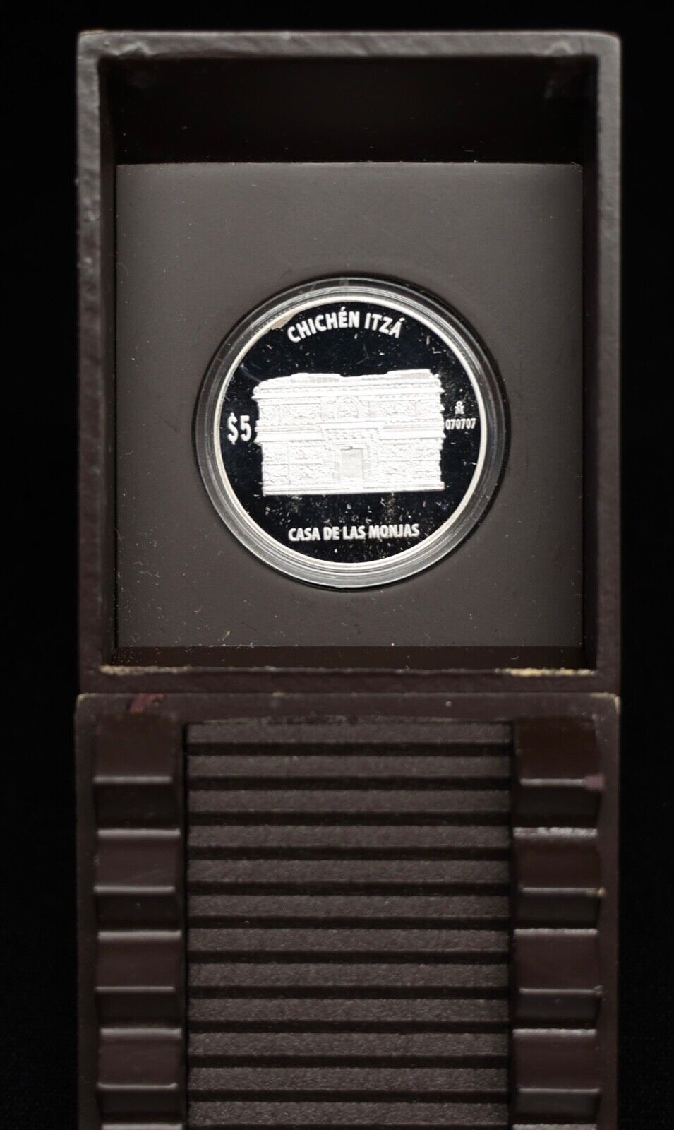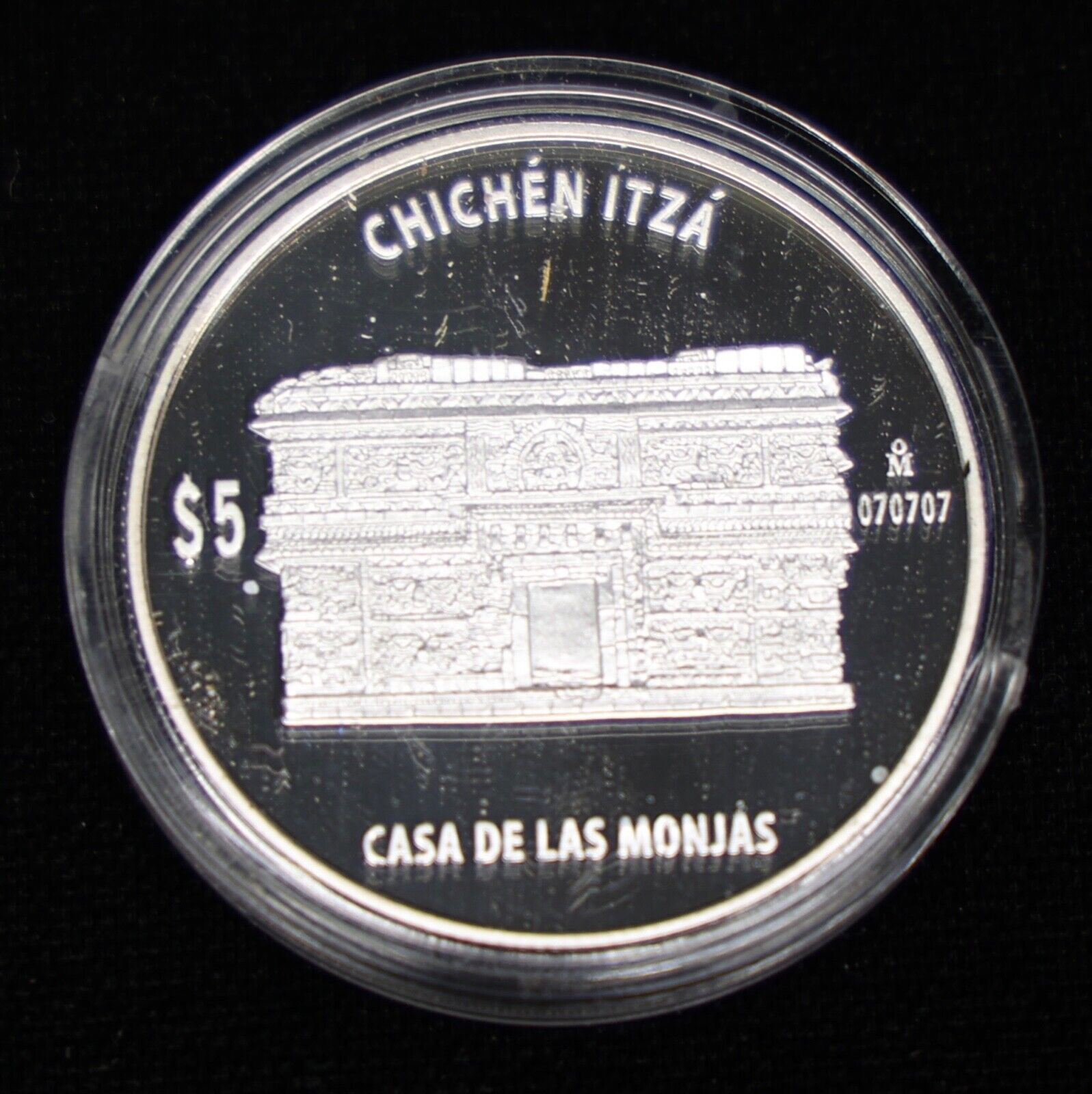 2007 Mexico Silver Proof 5 Pesos Coin -Chichen Itza “Casa De Las Monjas” in Case