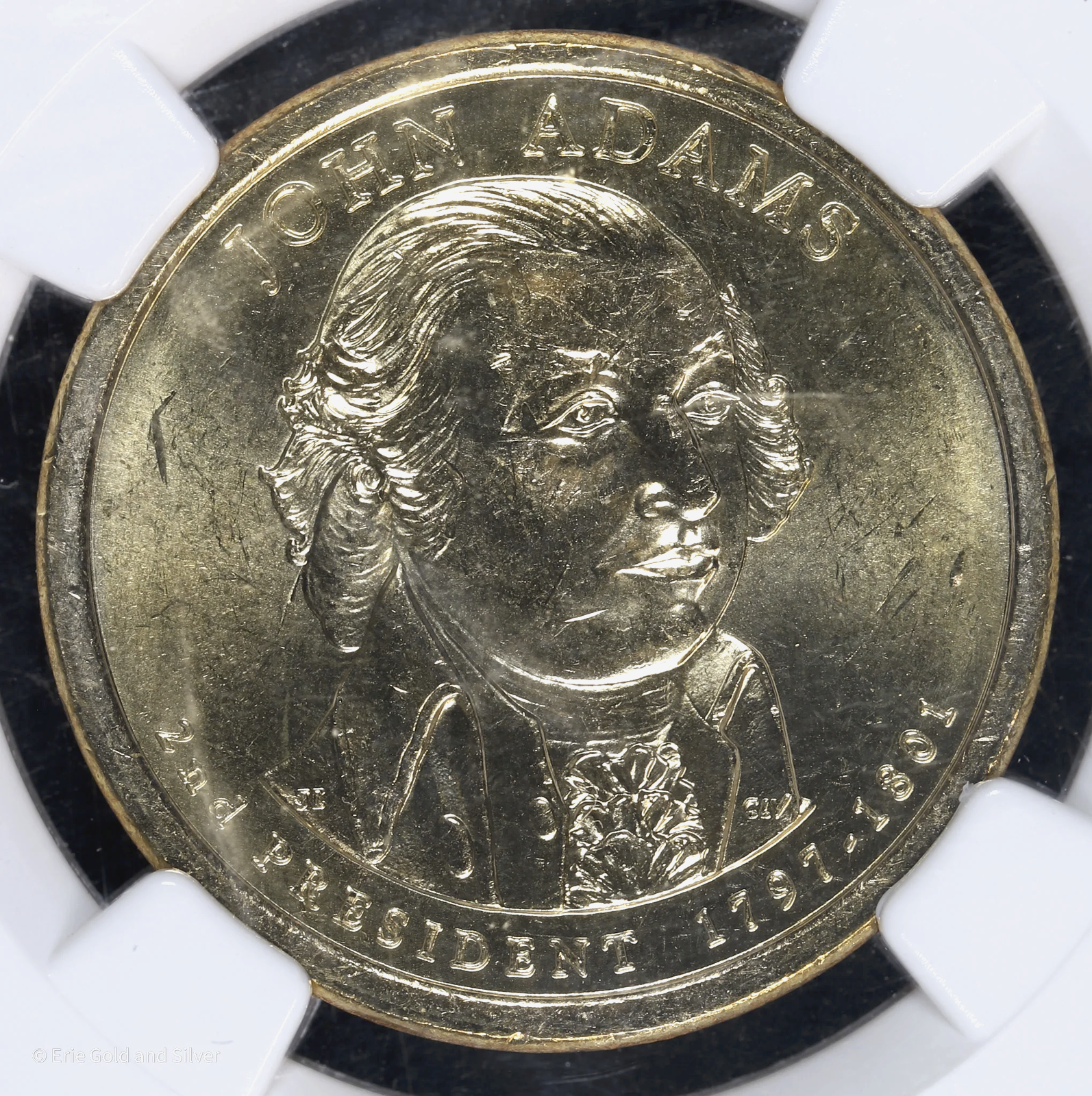 2007-P $1 Adams Presidential Dollar NGC MS 64 | Error Dbl Edge Letter Inverted