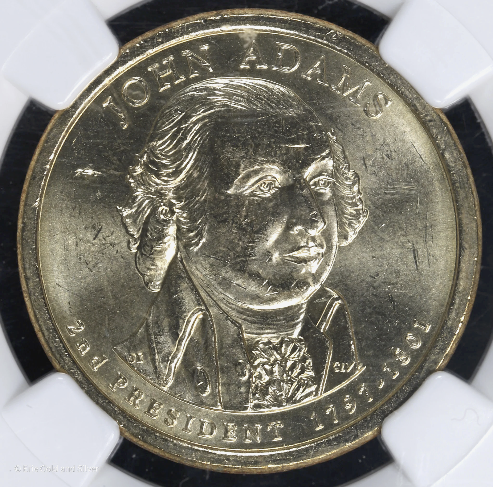 2007-P $1 Adams Presidential Dollar NGC MS 64 | Error Dbl Edge Letter Inverted