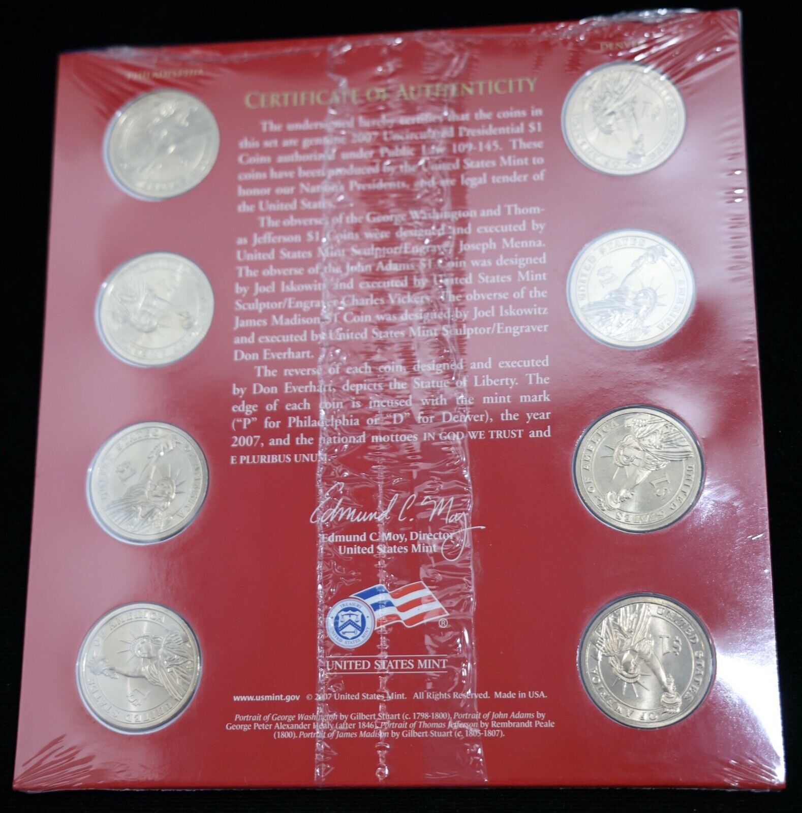 2007 P & D US Mint Uncirculated Presidential Dollar 8-Coin Set Sealed First Year