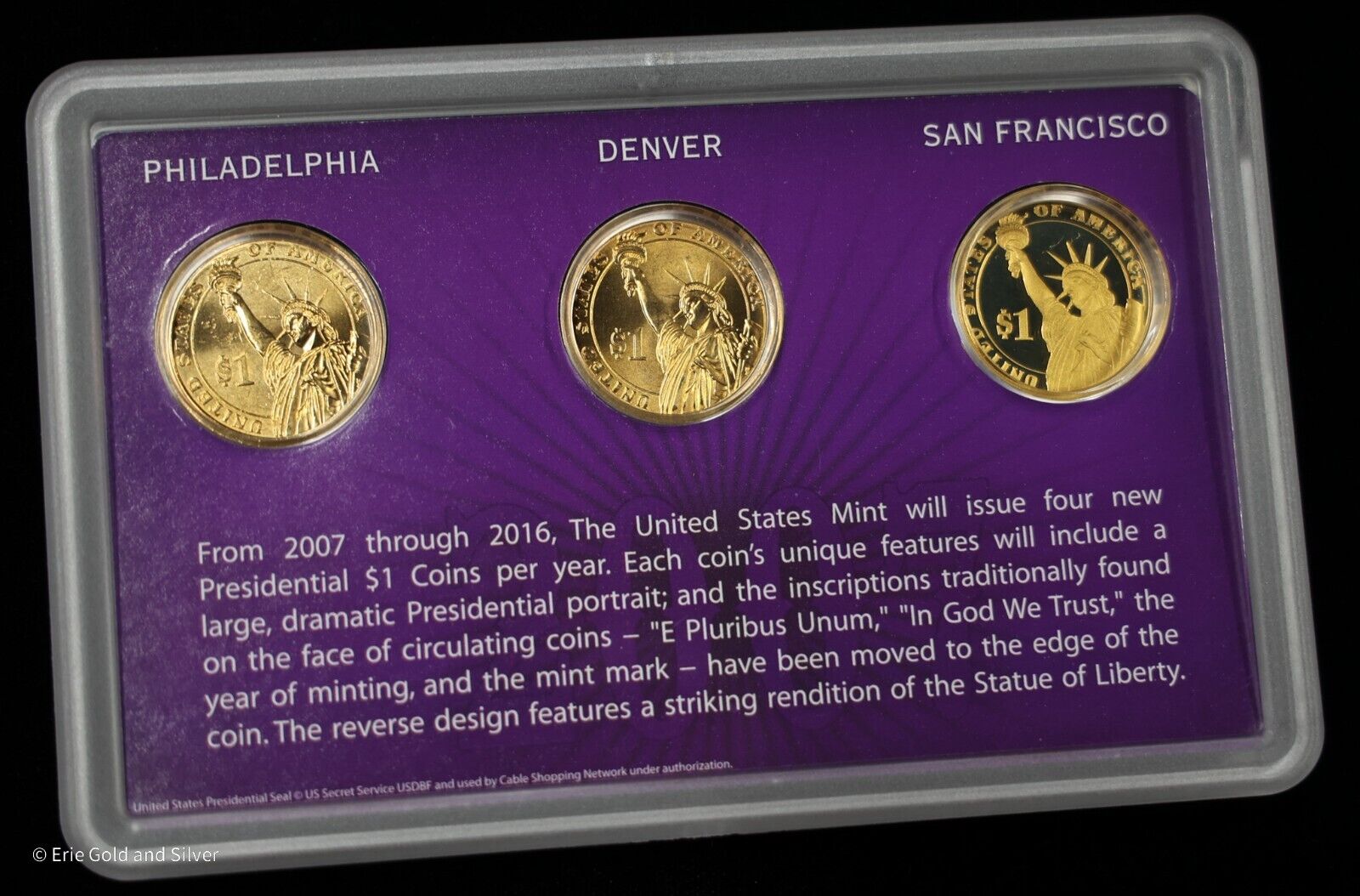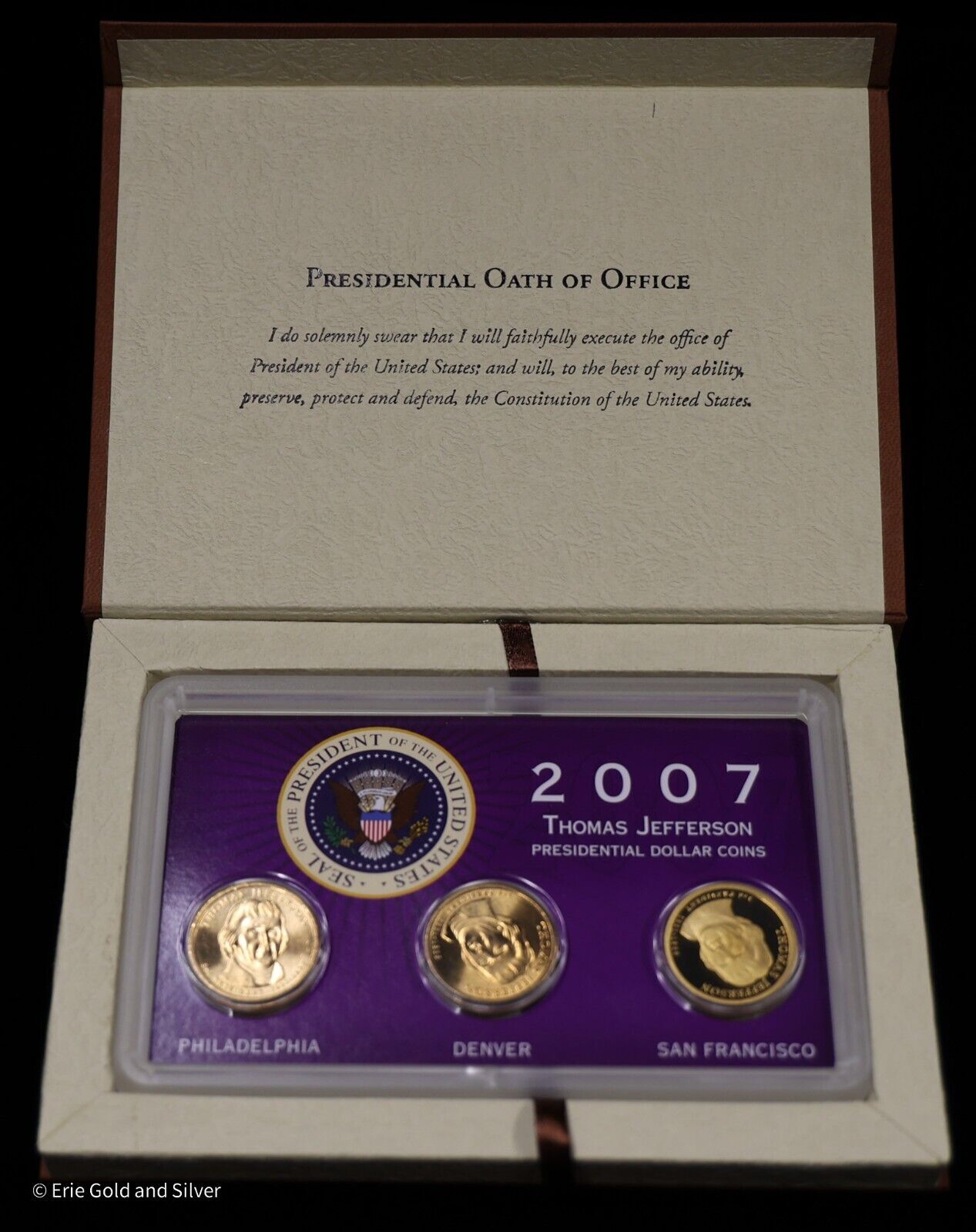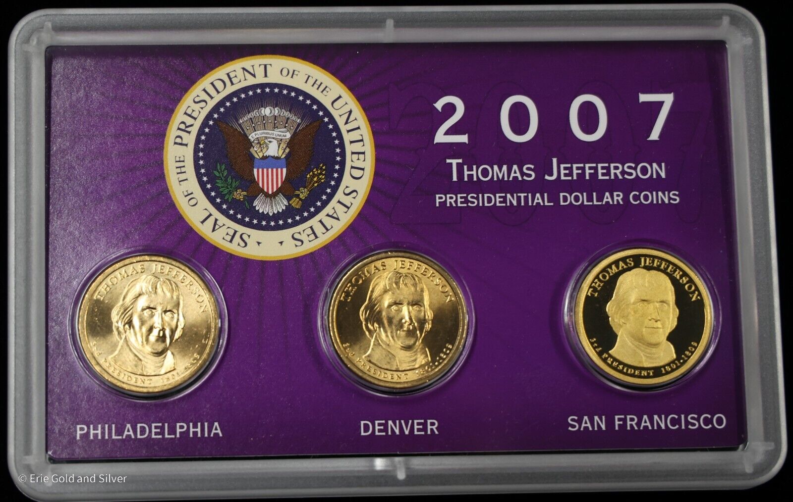 2007 PDS Thomas Jefferson Presidential Dollar 3-Coin Set in Presentation Box