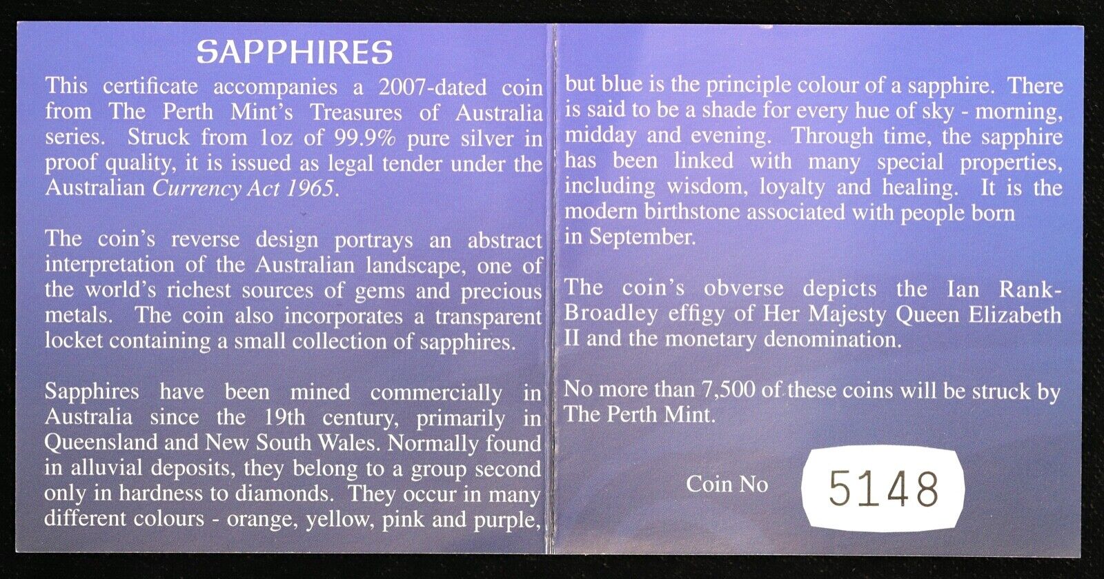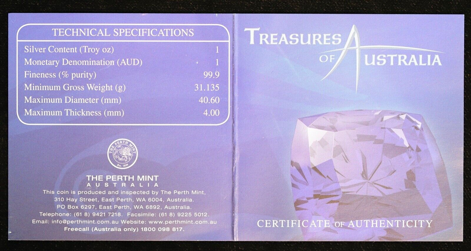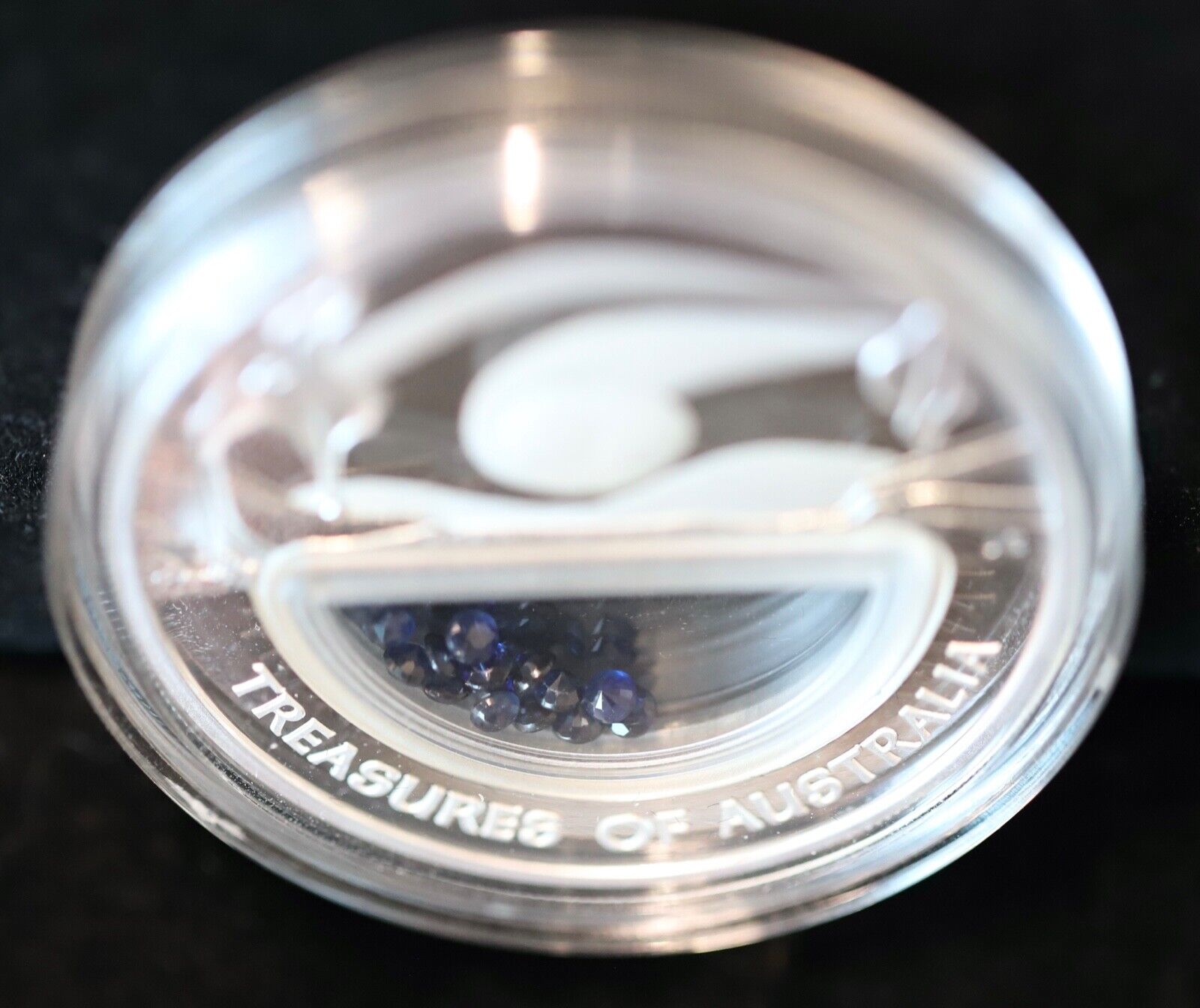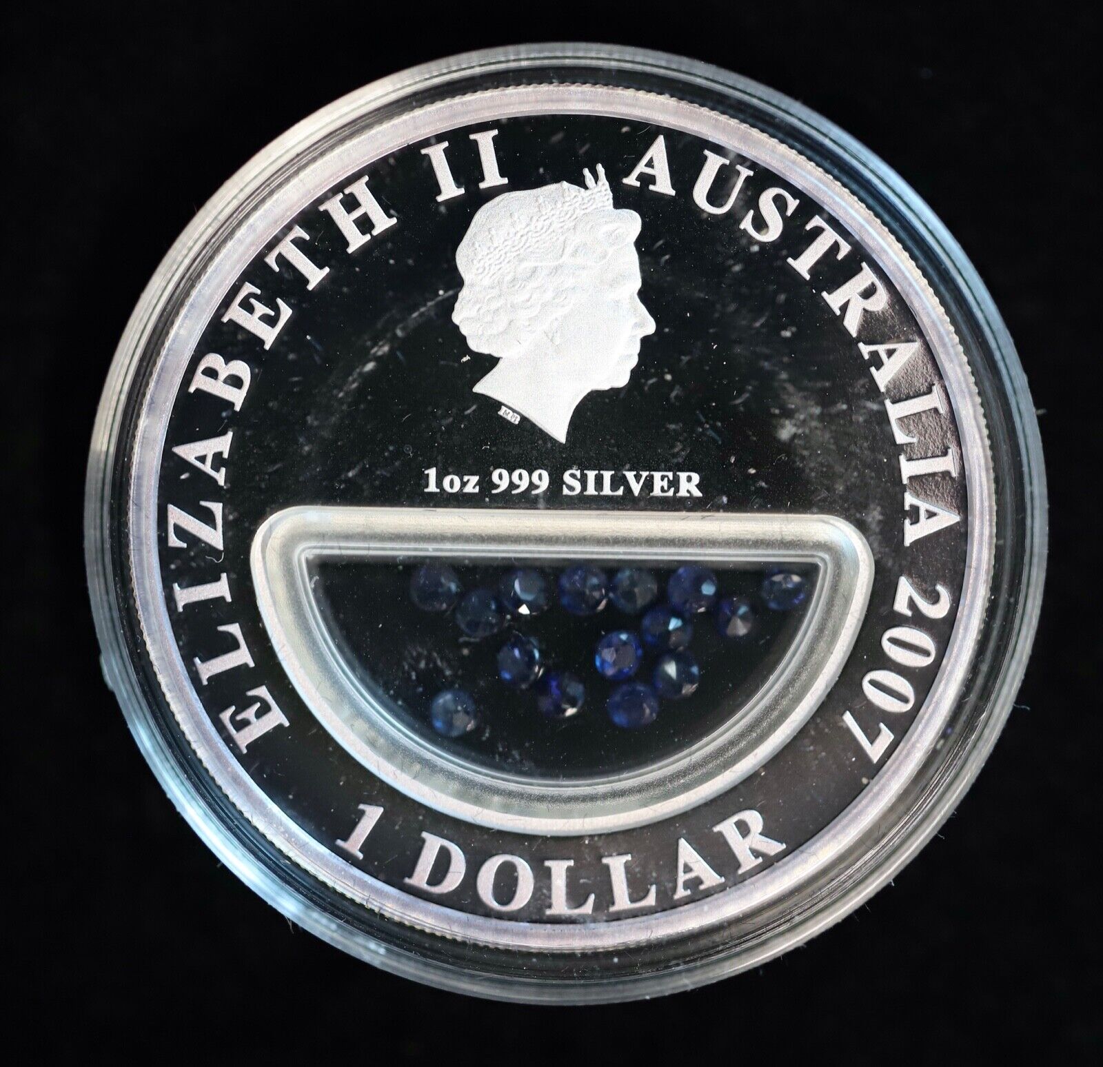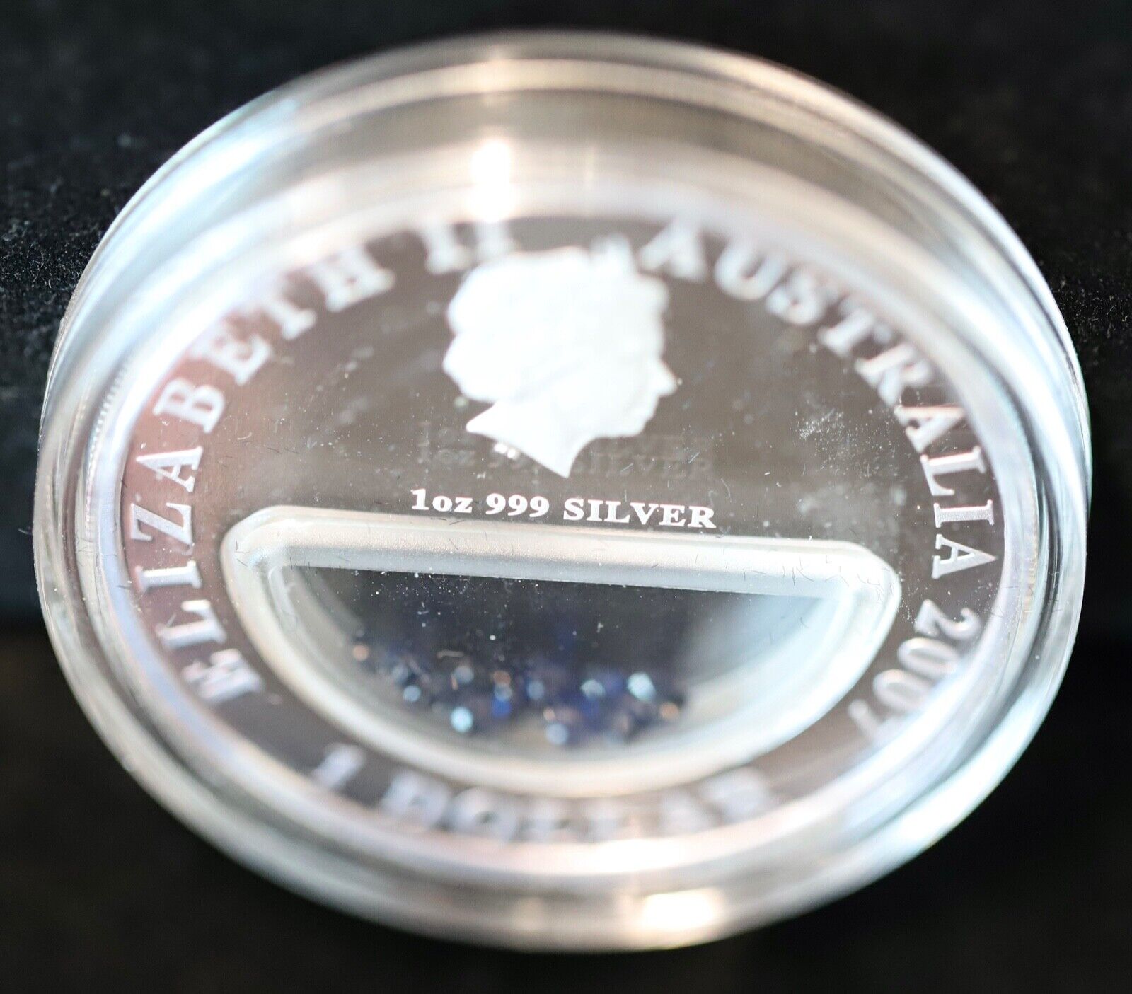 For sale is a 2007 Treasures of Australia 1 oz .999 Silver with Blue Sapphire Crystals & Box/COA. View pictures for details and condition. There are multiple available, so the coin you receive may not be the exact coin pictured, however it will be similar quality. Feel free to contact us with any questions.