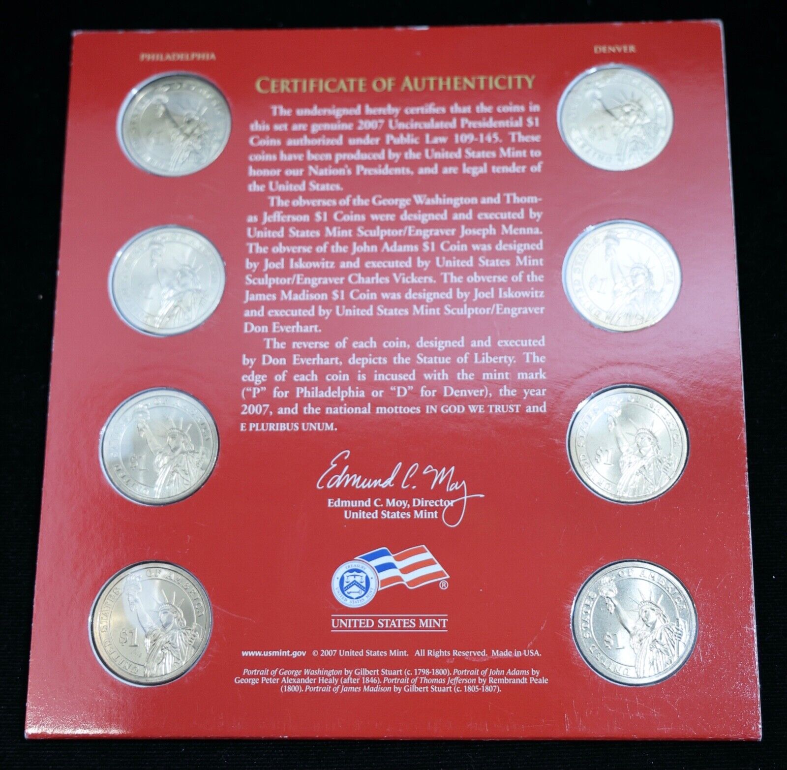 2007 U.S. Mint P&D Presidential Dollar 8-Coin Mint Set with COA