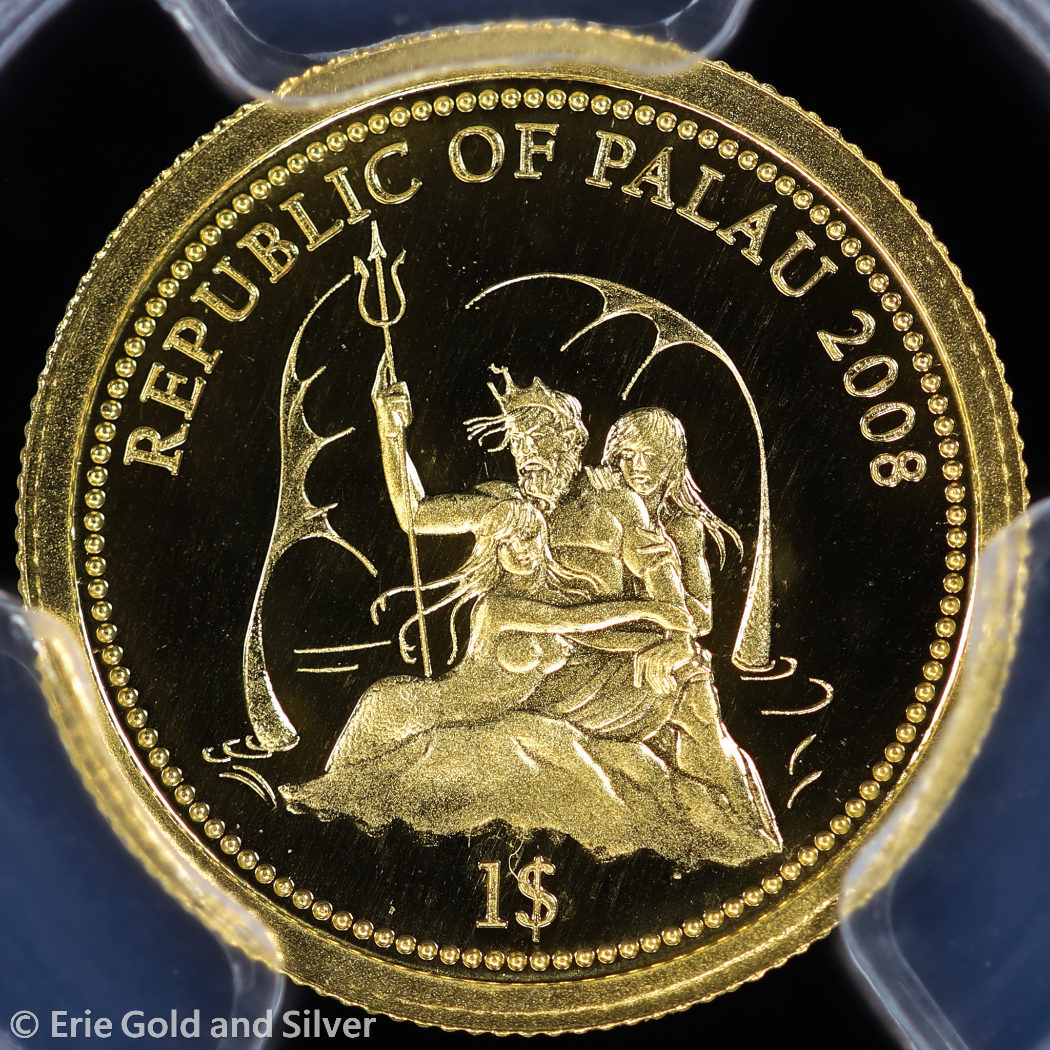 2008 $1 Palau Marine Life Protection - Grey Reef Shark 1/25 oz Gold Proof Coin PCGS PR 69 DCAM | AGW: 0.04, KM# 163, Mintage 1500