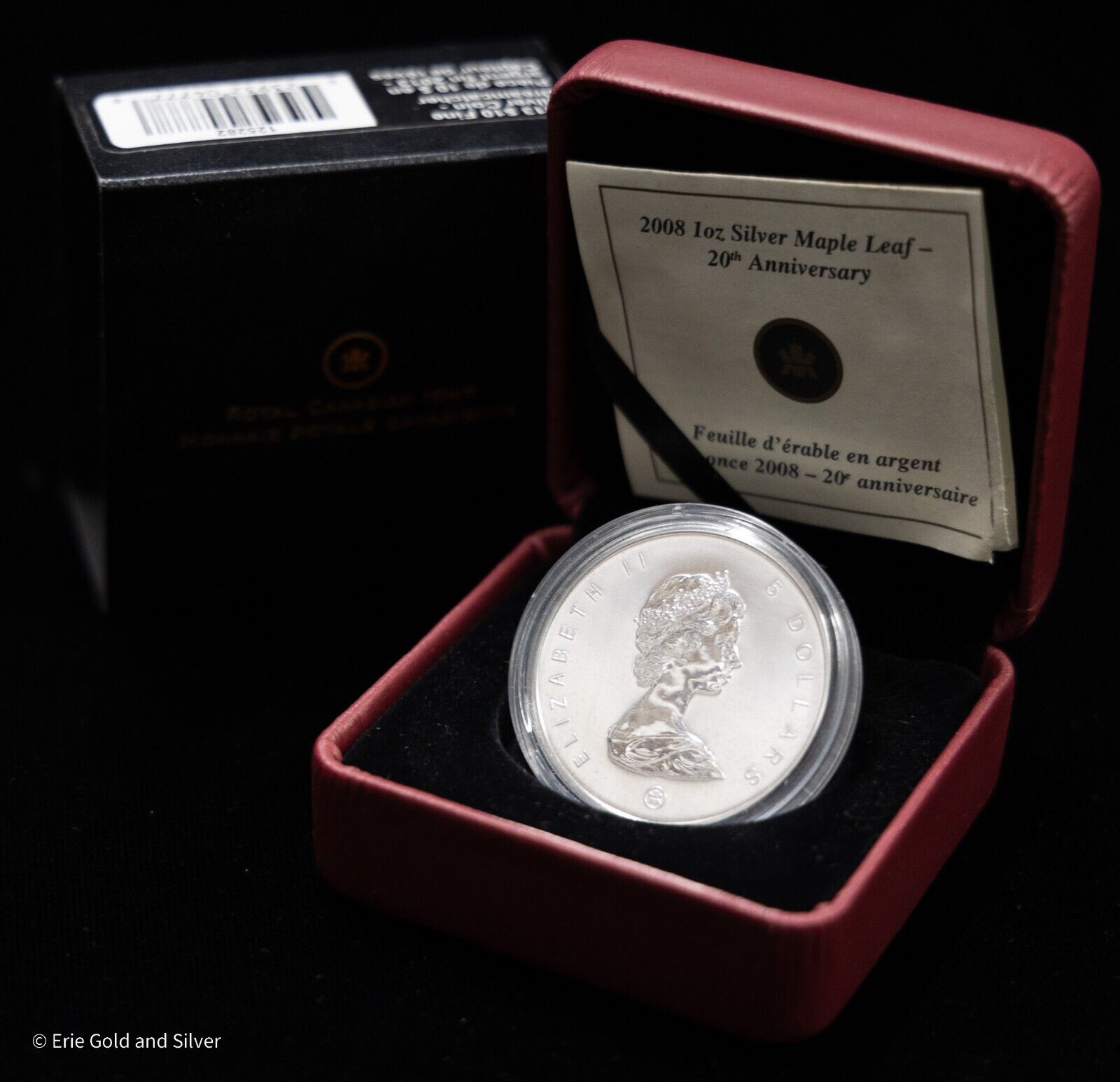 2008 $5 Canadian Maple Leaf .9999 Silver 20th Anniversary in Box