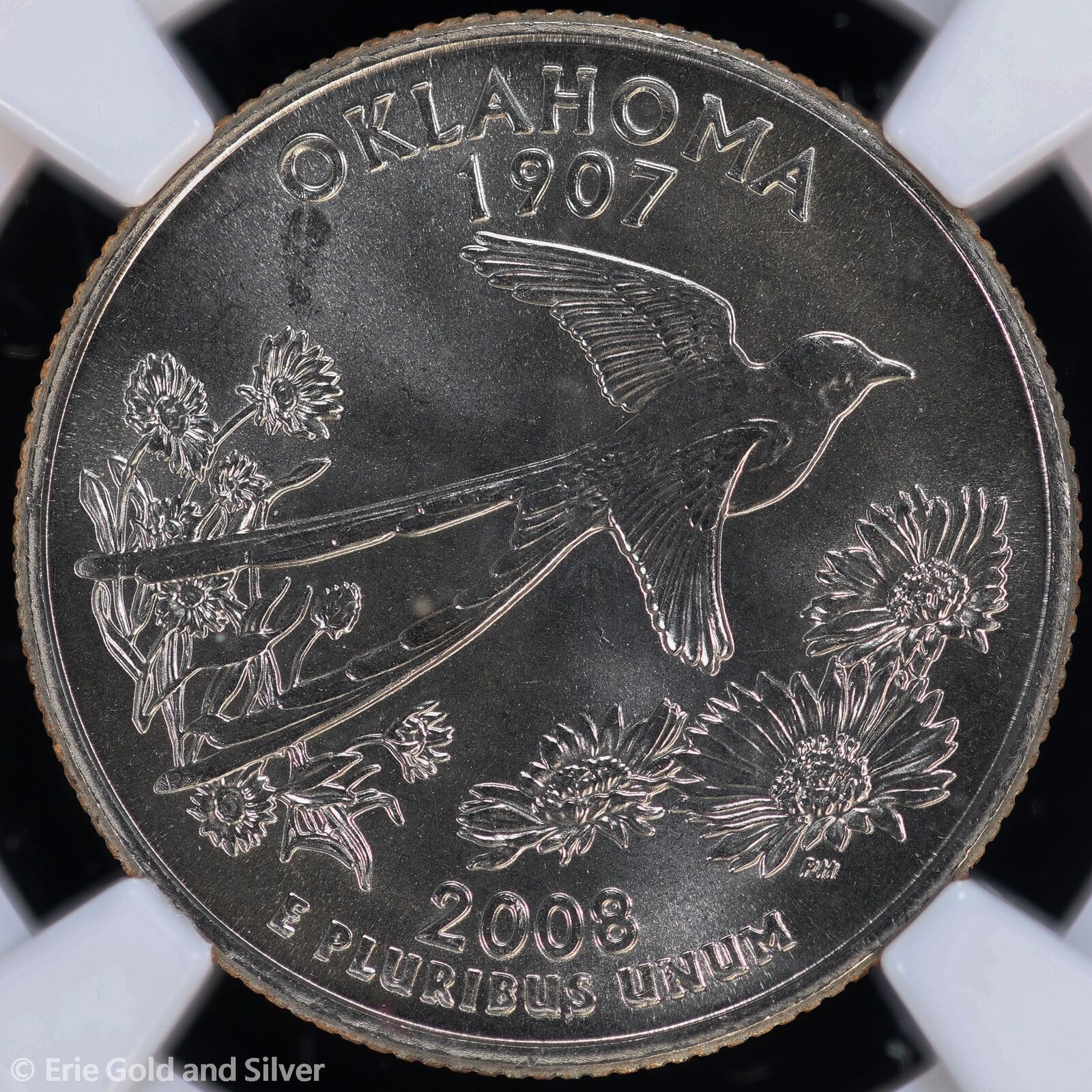 2008-D 25c Oklahoma OK State Quarter NGC MS 66 | Uncirculated UNC BU