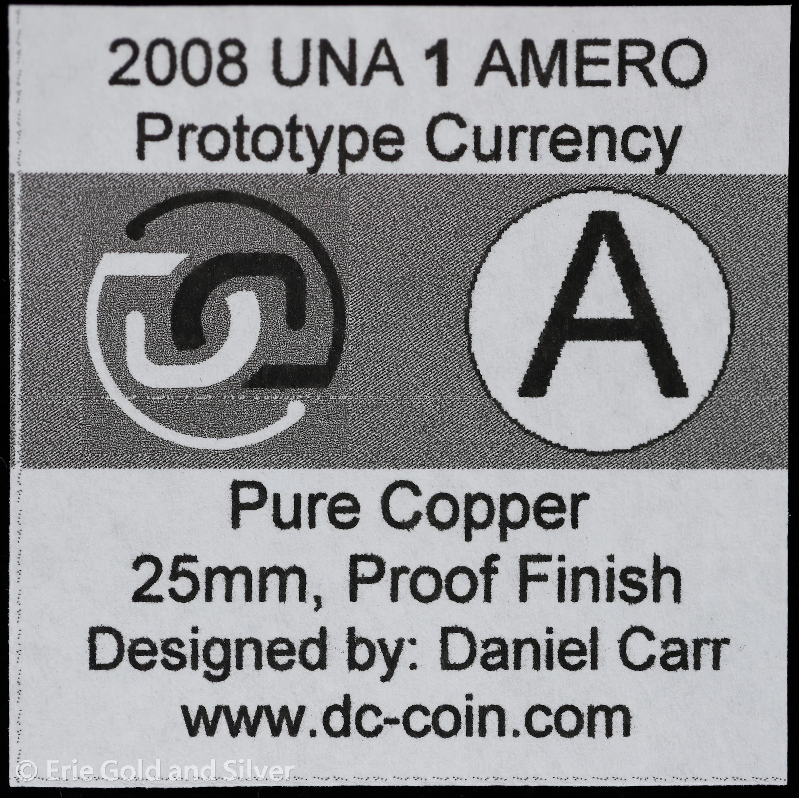 2008-D Copper Token Winged Liberty Concept ANACS MS 69 DCAM | COA
