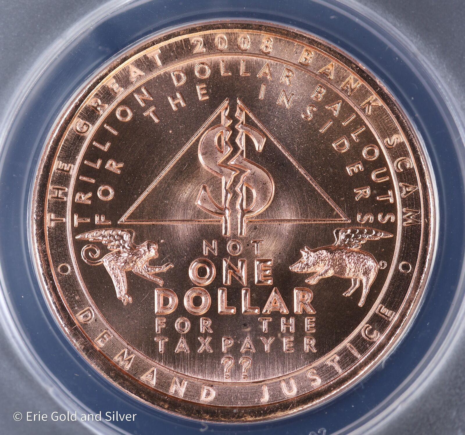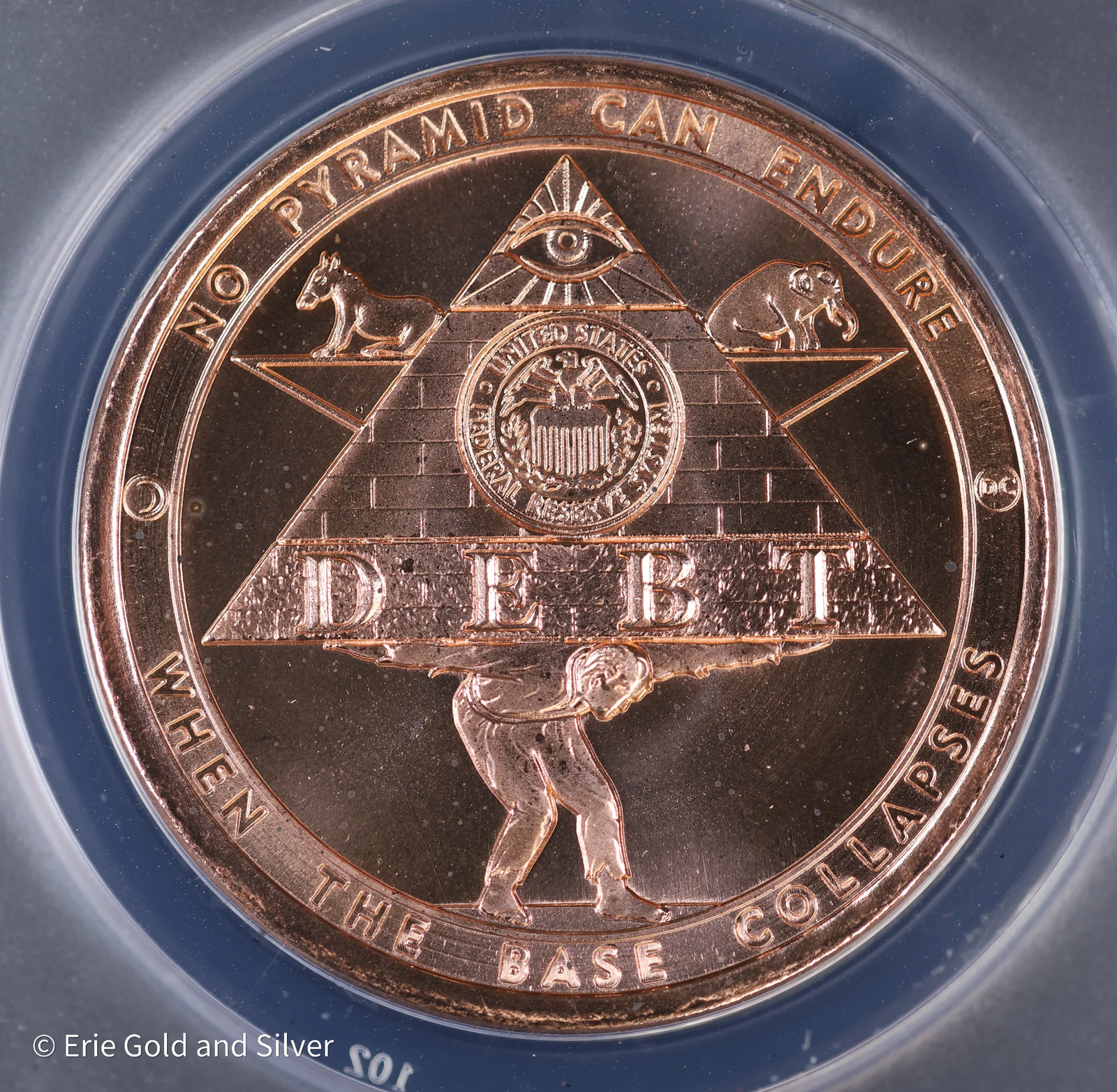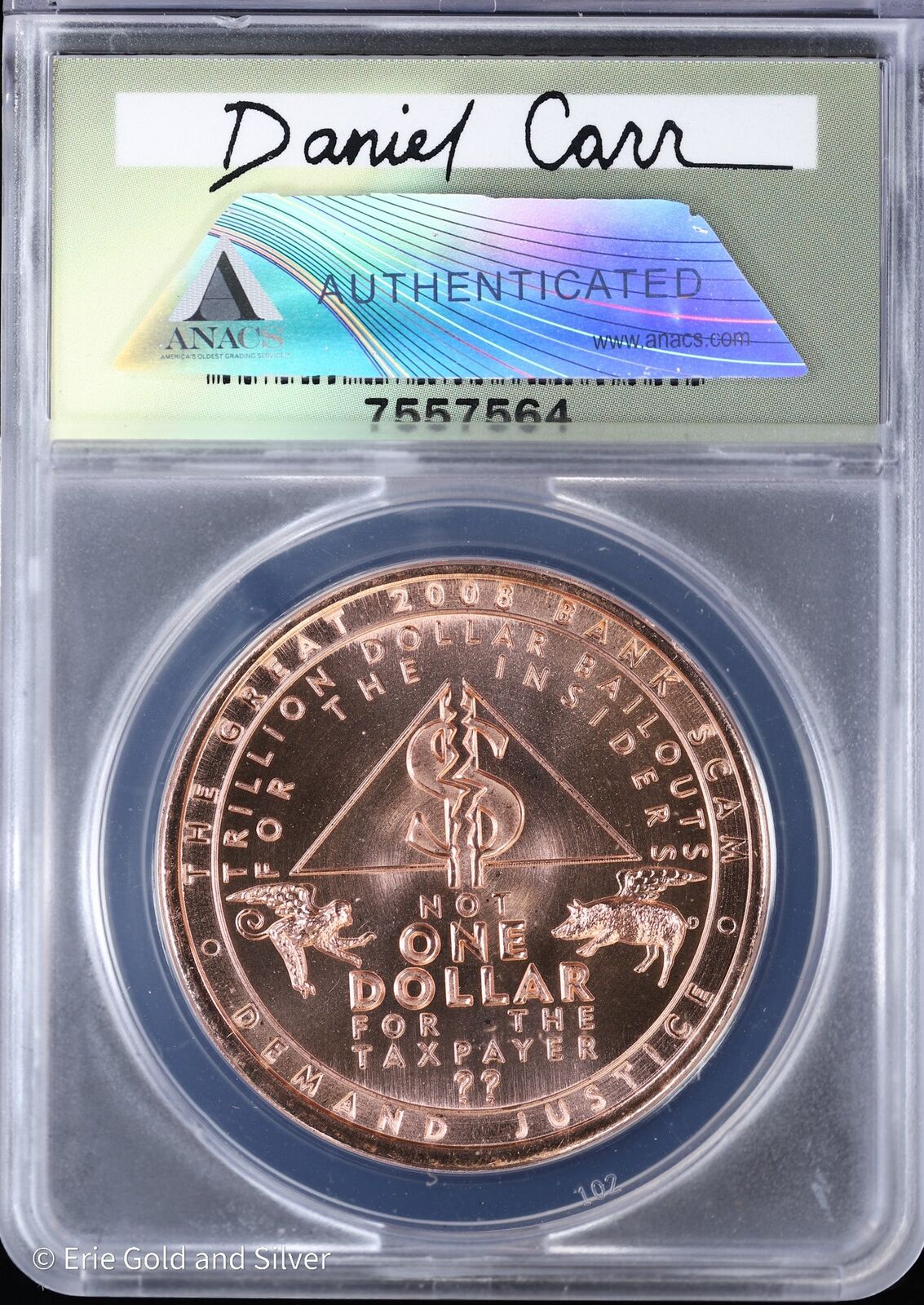 2008 Medal Dan Carr Moonlight Mint Political Debt Pyramid Copper ANACS MS 67 Red
