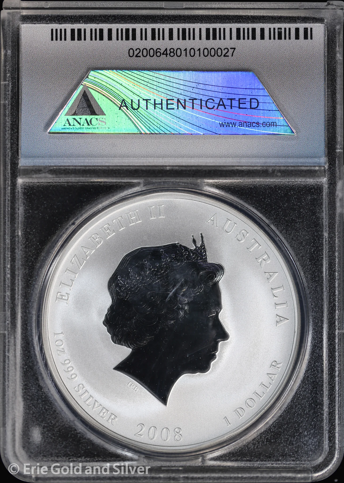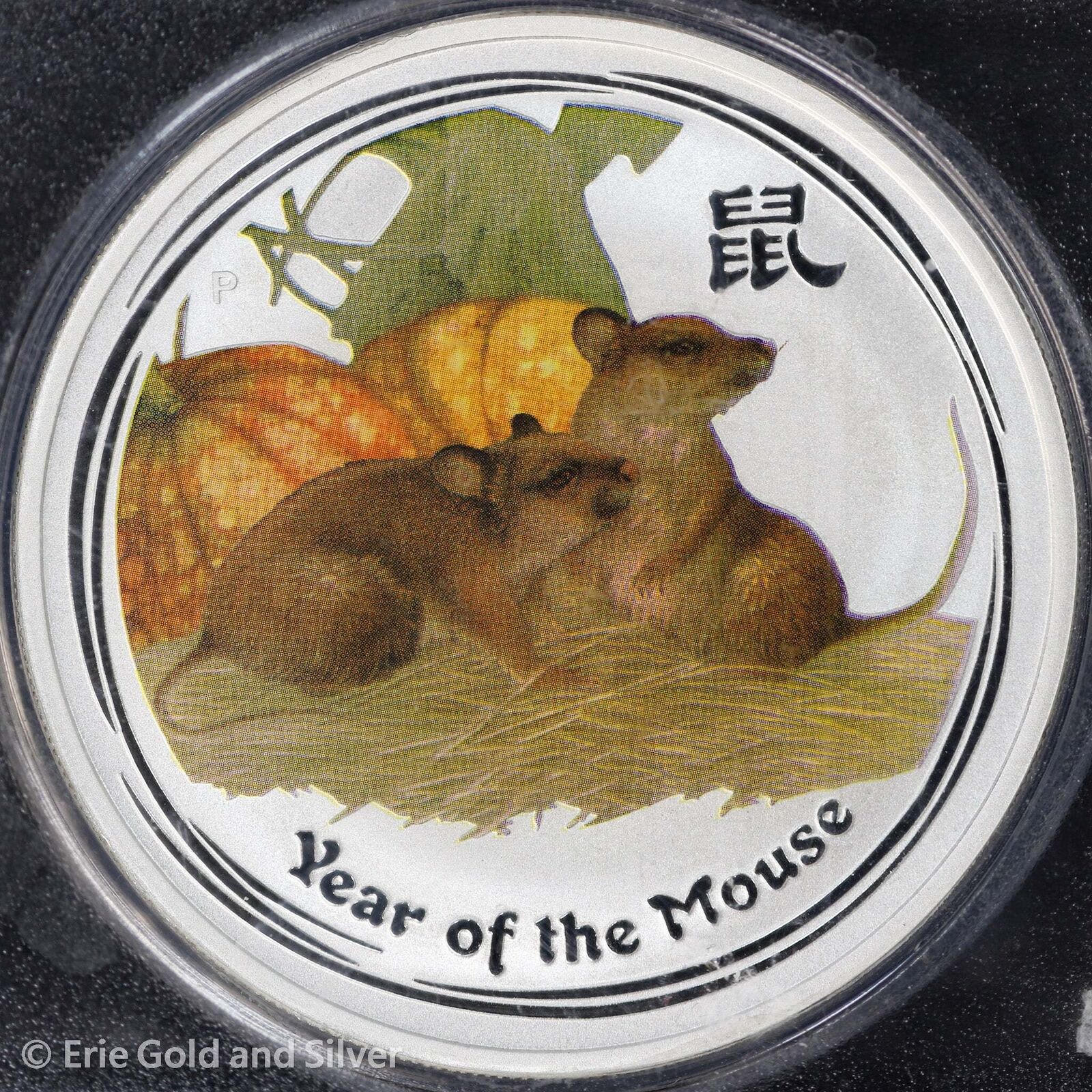 2008-P $1 Australia 1 oz Silver Colorized Mouse ANACS MS 70