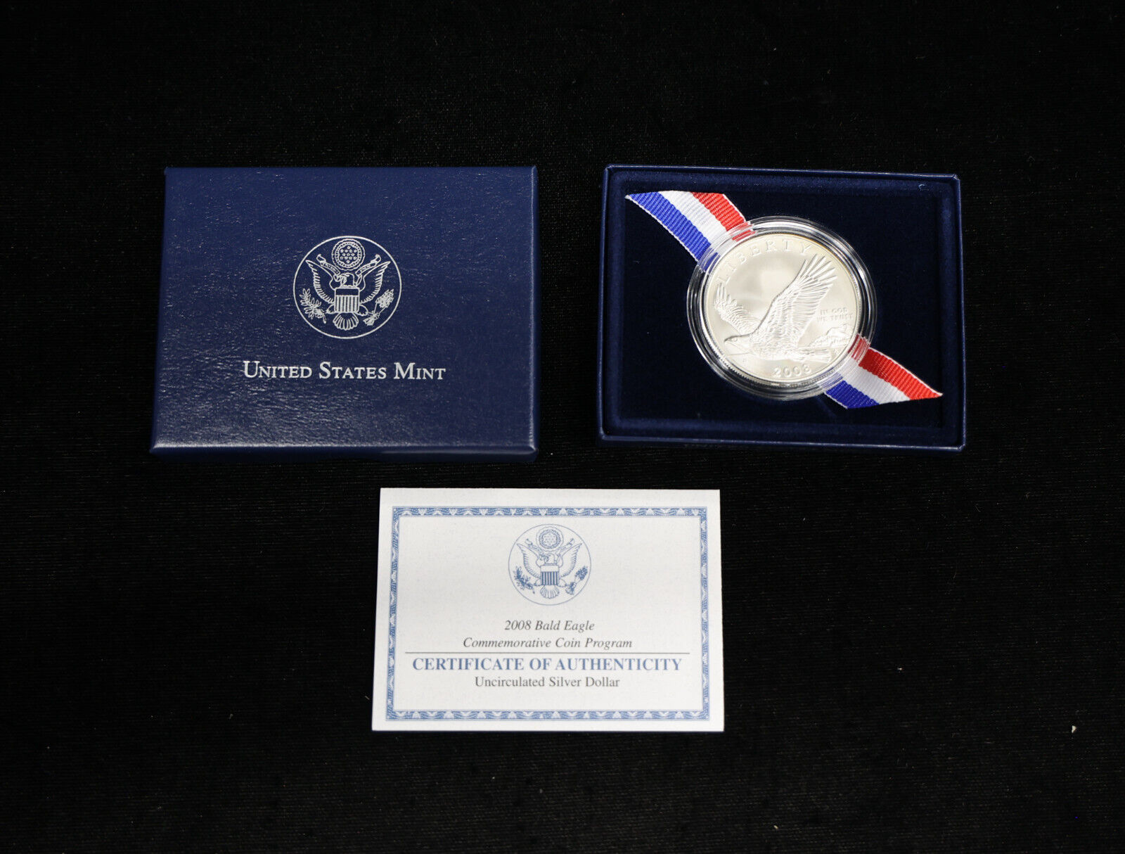 2008 P BU Bald Eagle Commemorative Silver Dollar $1 US Mint Box COA OGP MS Unc.