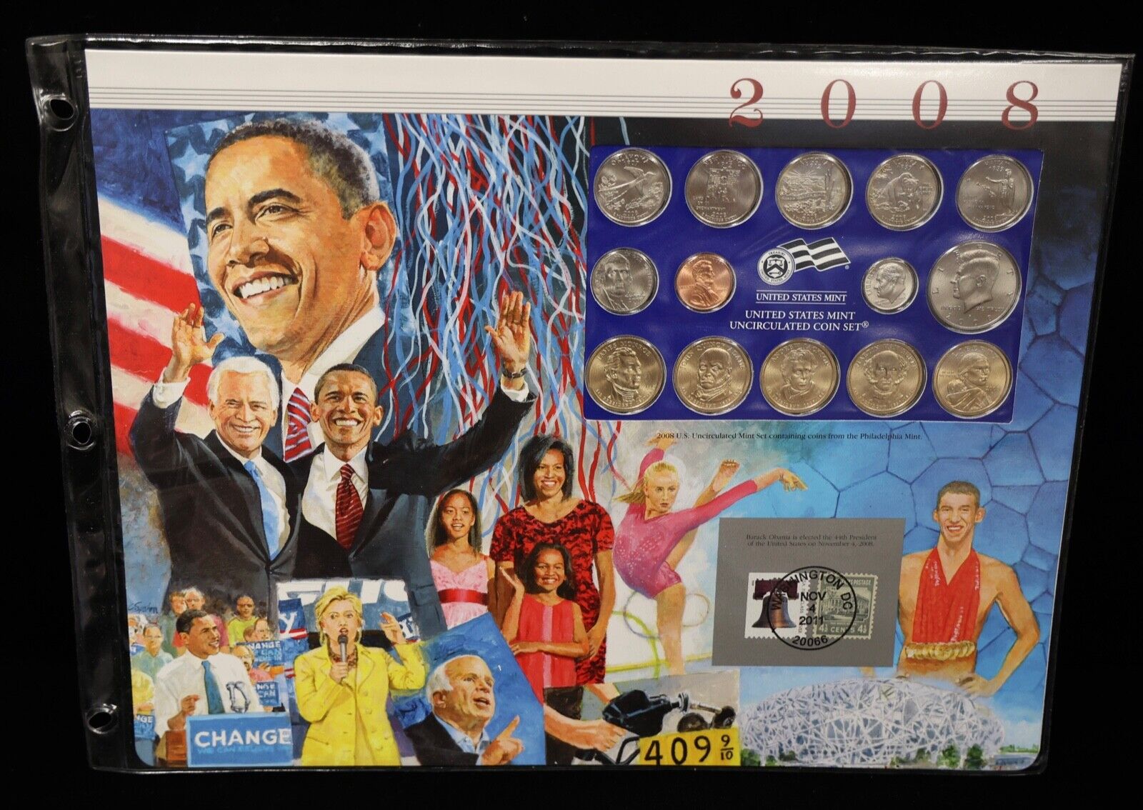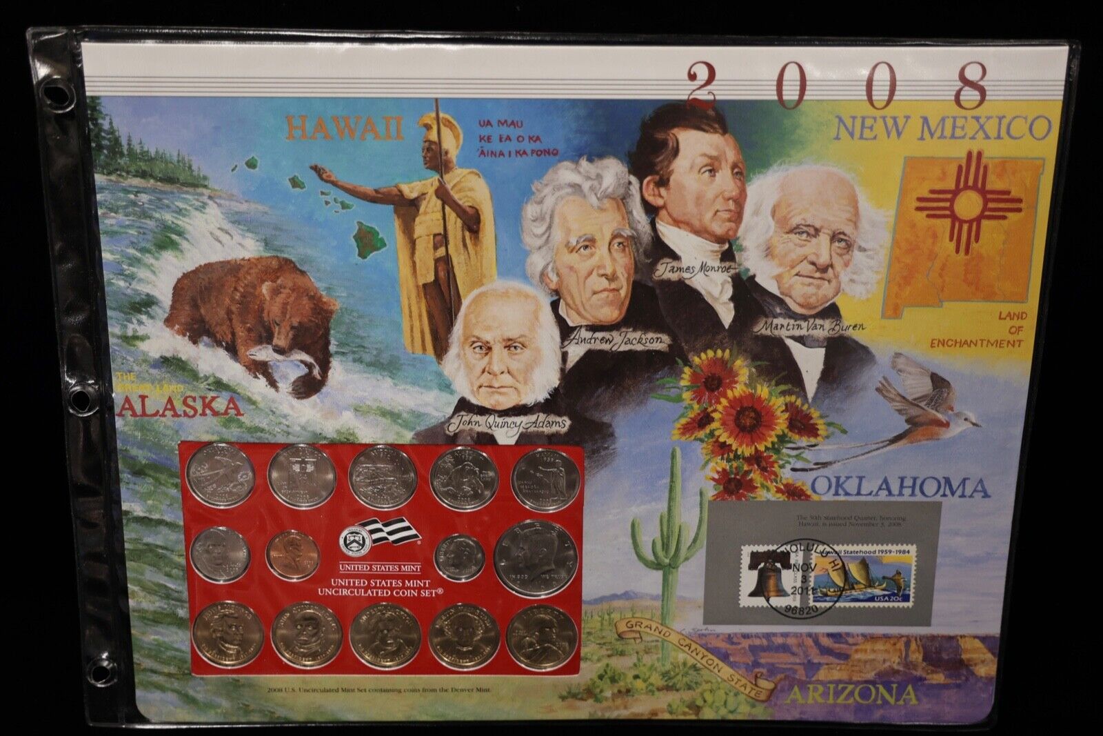 2008 P & D Uncirculated Mint Set Postal Commemorative Society Coins & Stamps