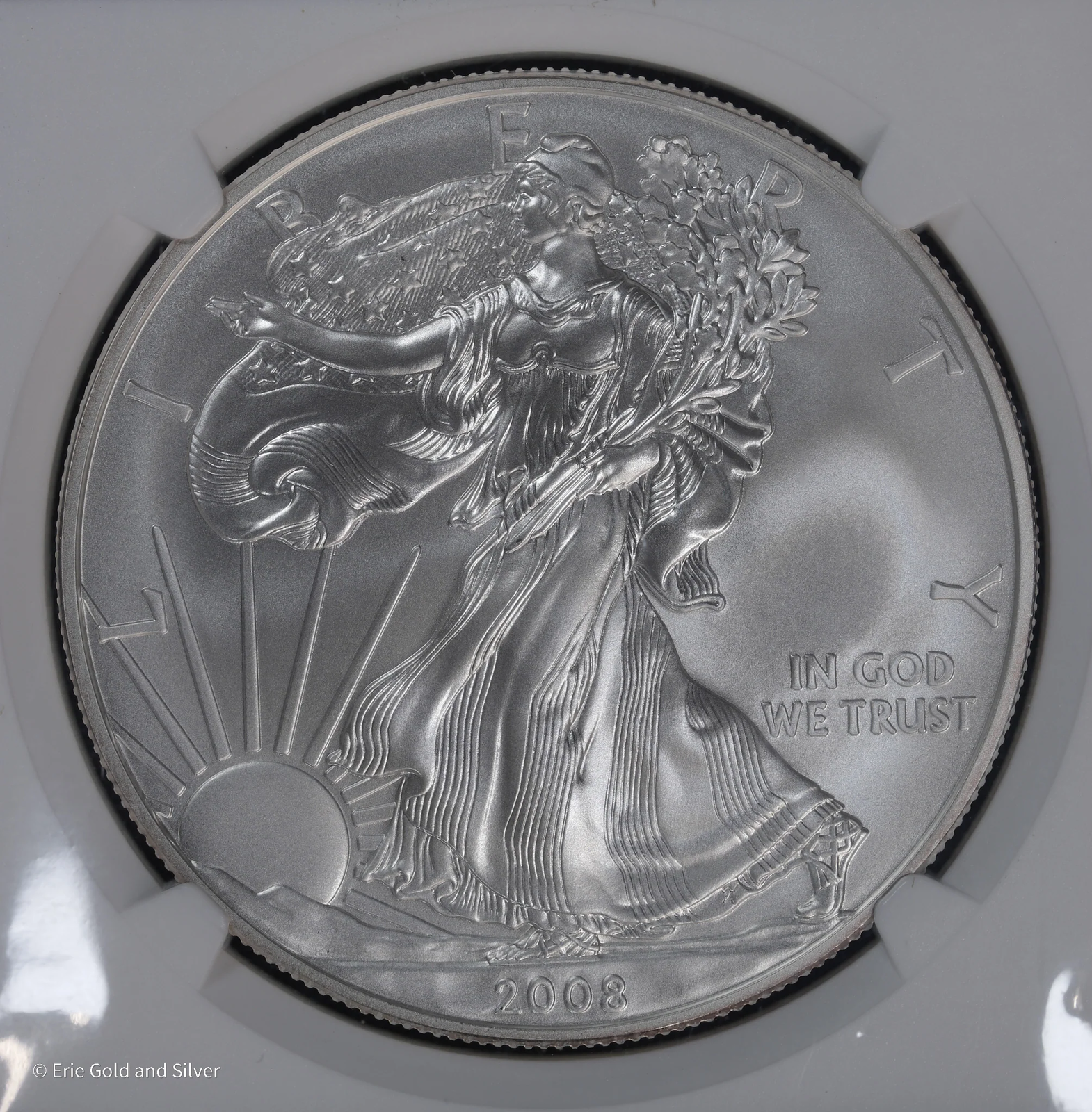 2008 W $1 American Silver Eagle NGC MS 70 (BU Uncirculated) ASE