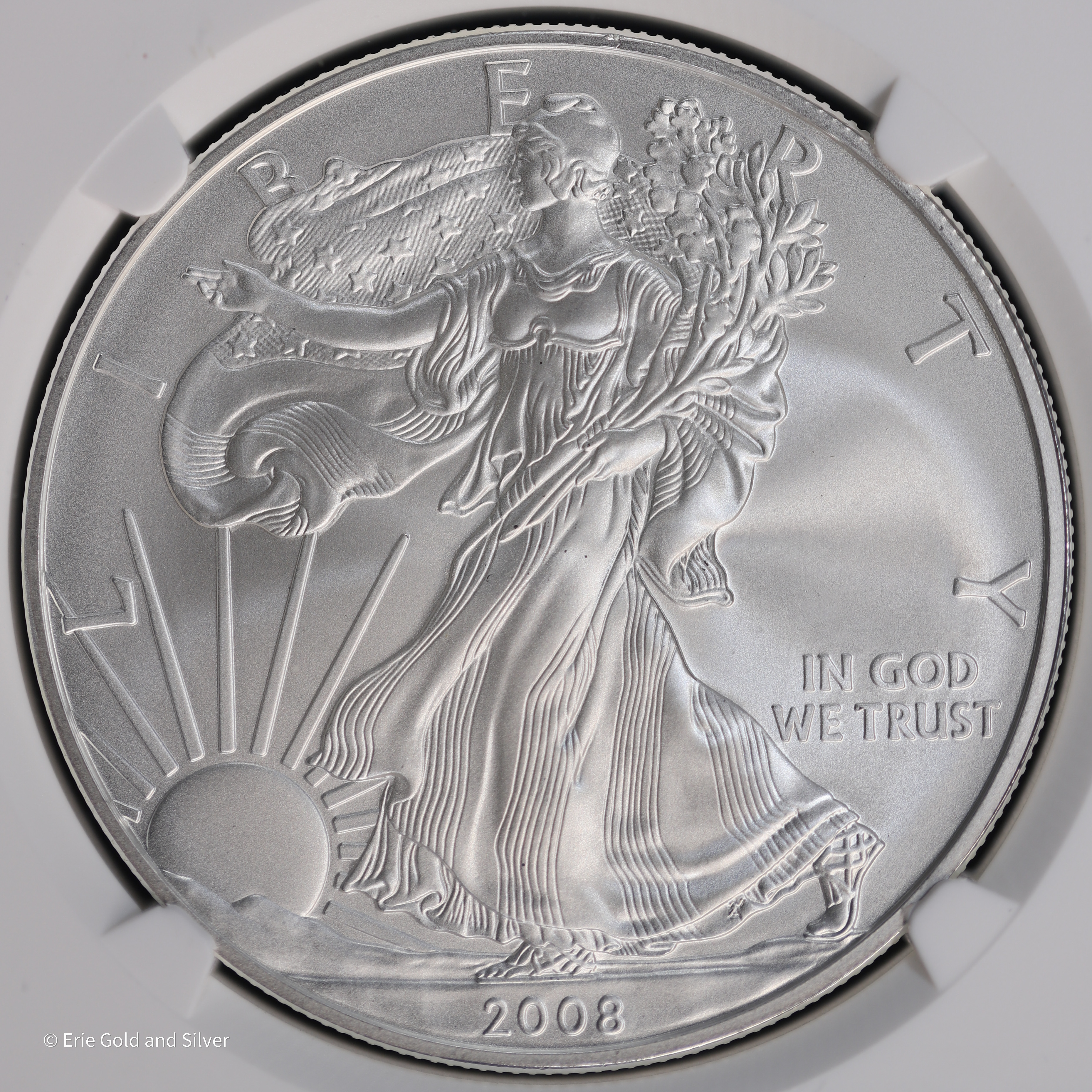 For sale is a 2008 W Burnished $1 American Silver Eagle Rev of '07 Early Release. Graded / Certified by NGC at MS 70.