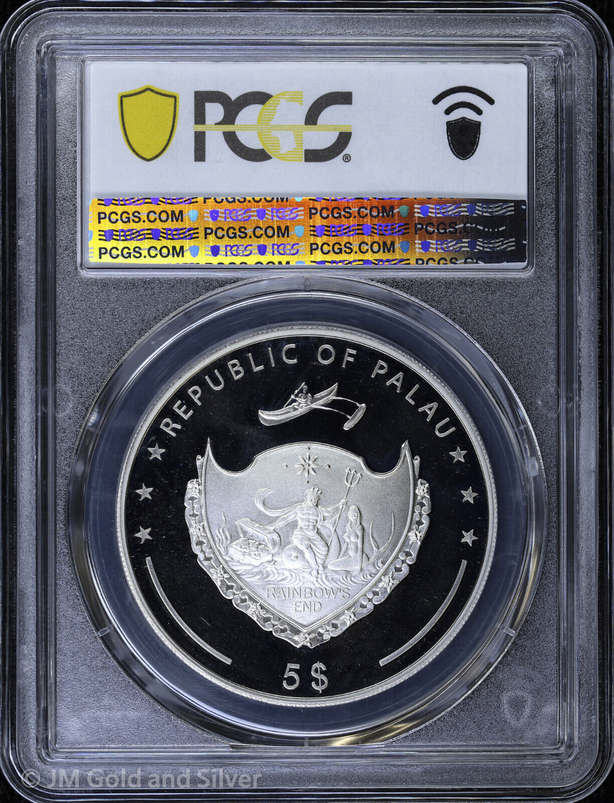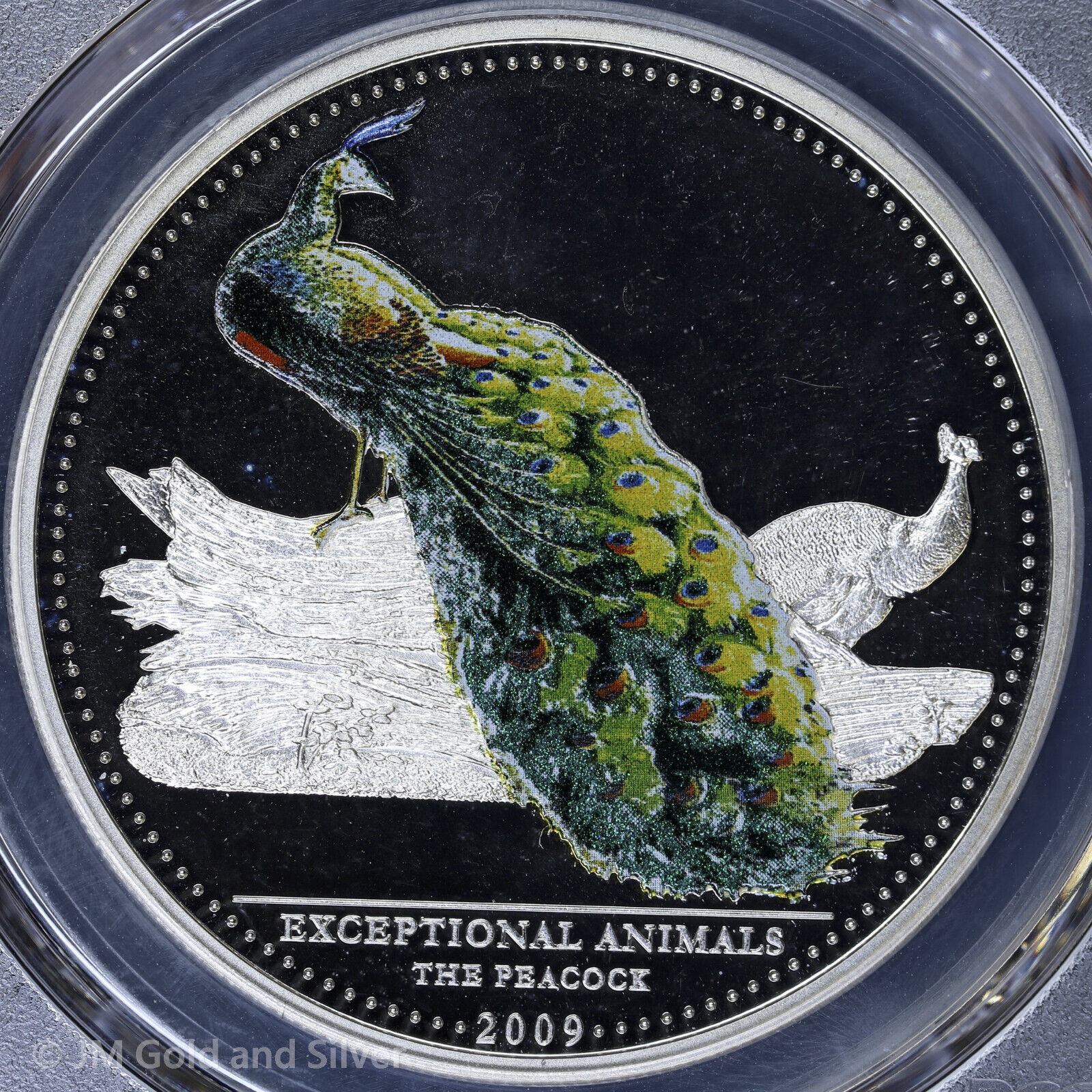 2009 $5 Palau Proof Colorized Silver Peacock PCGS PR 68 DCAM