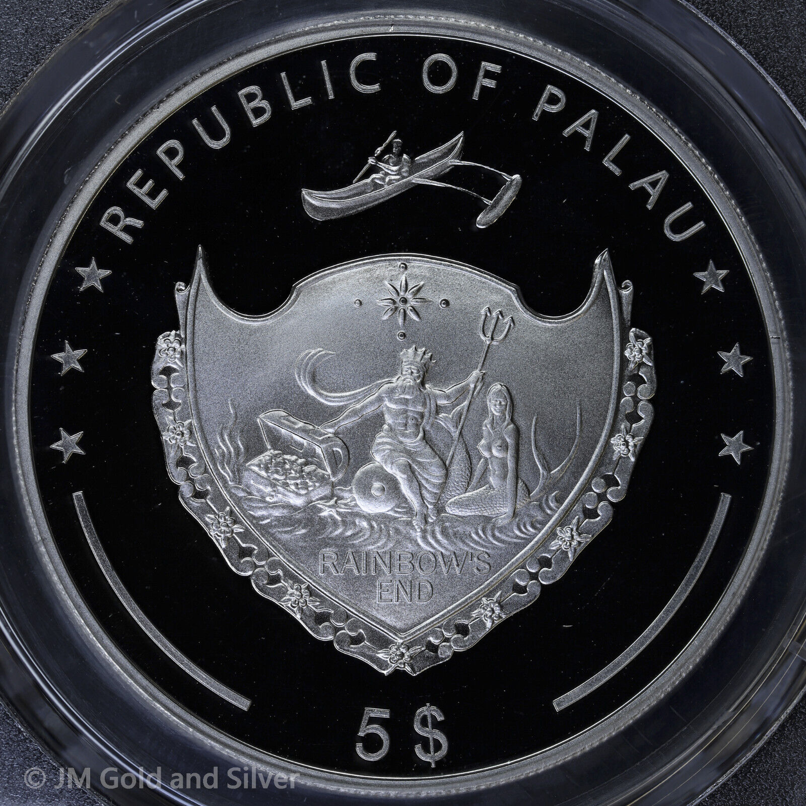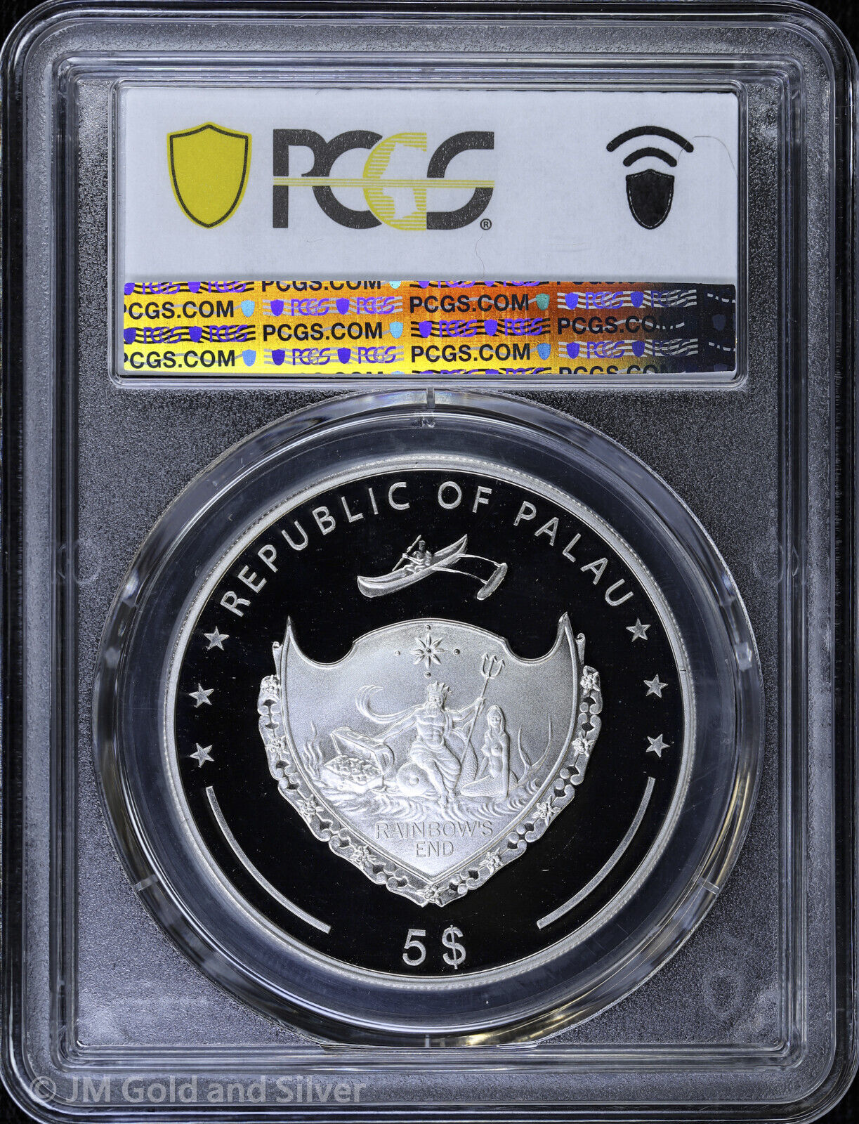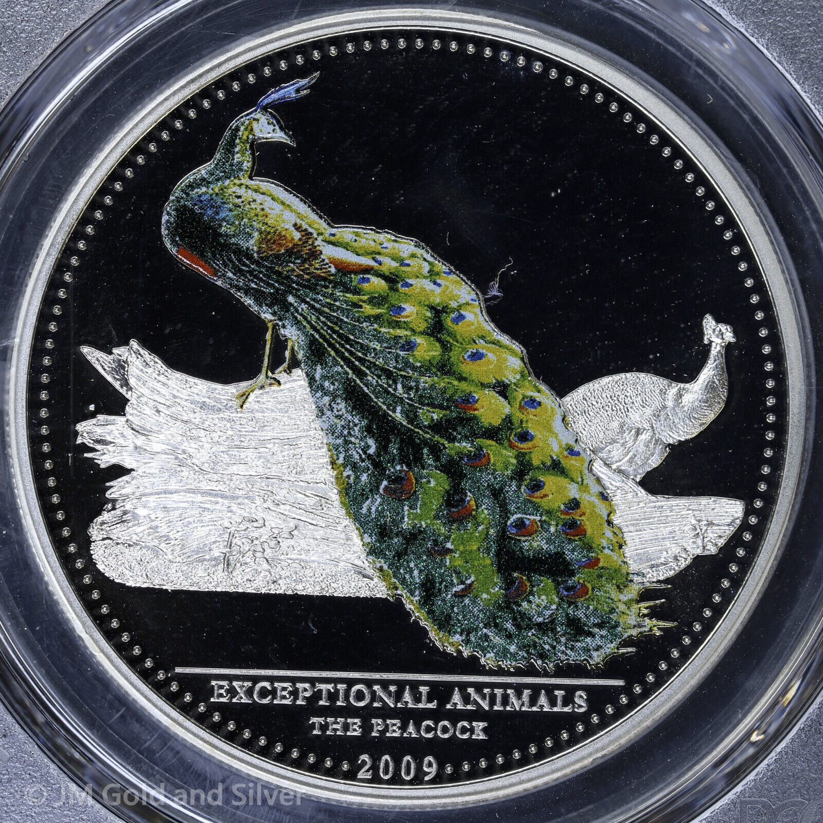 2009 $5 Palau Proof Colorized Silver Peacock PCGS PR 69 DCAM