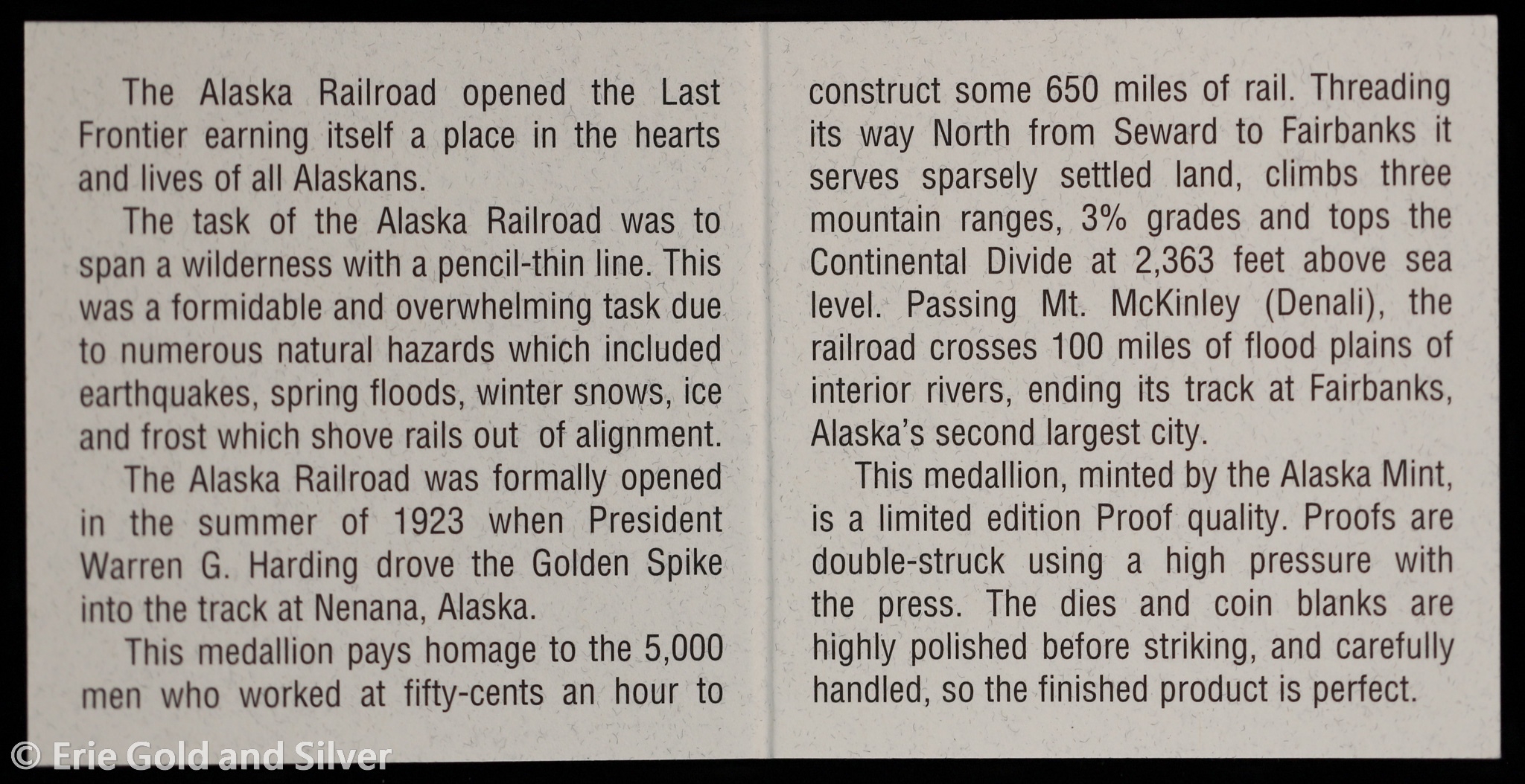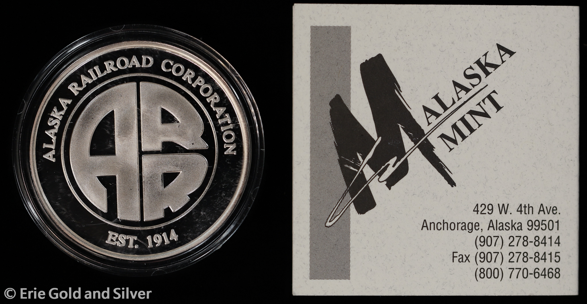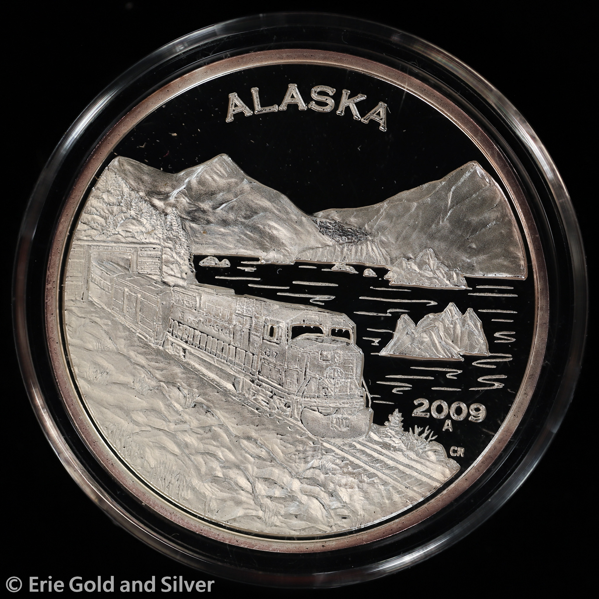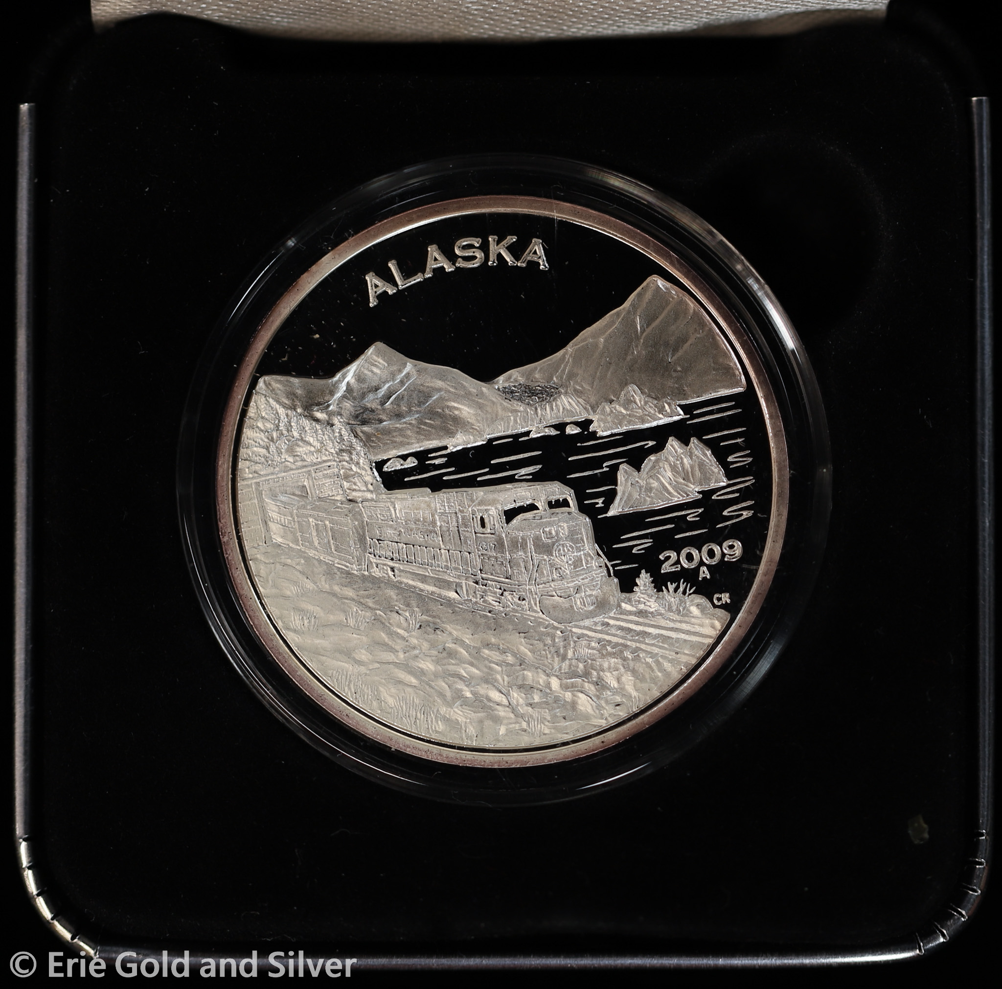 For sale is a 2009 Alaska Mint Railroad Corporation 1 oz .999 Silver Proof Medallion in Box.