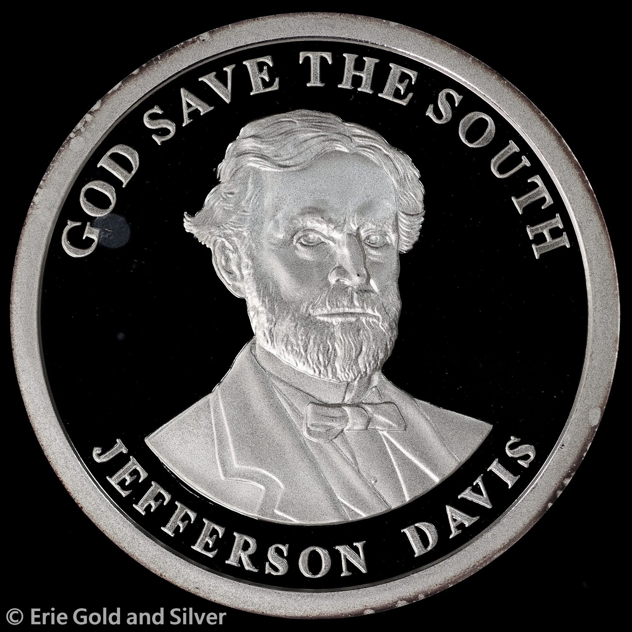 For sale is a 2009 Jefferson Davis God Save the South 1 oz .999 Silver Proof Round.