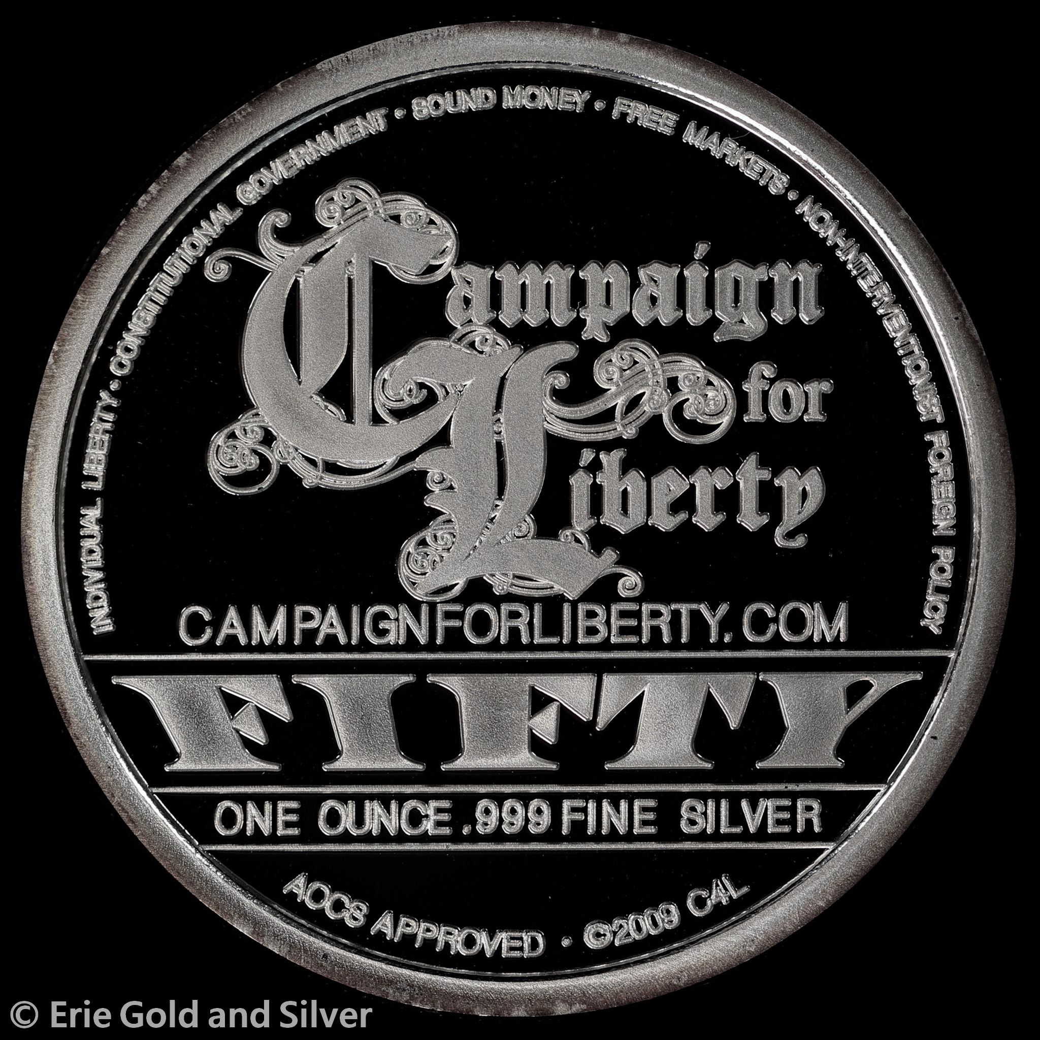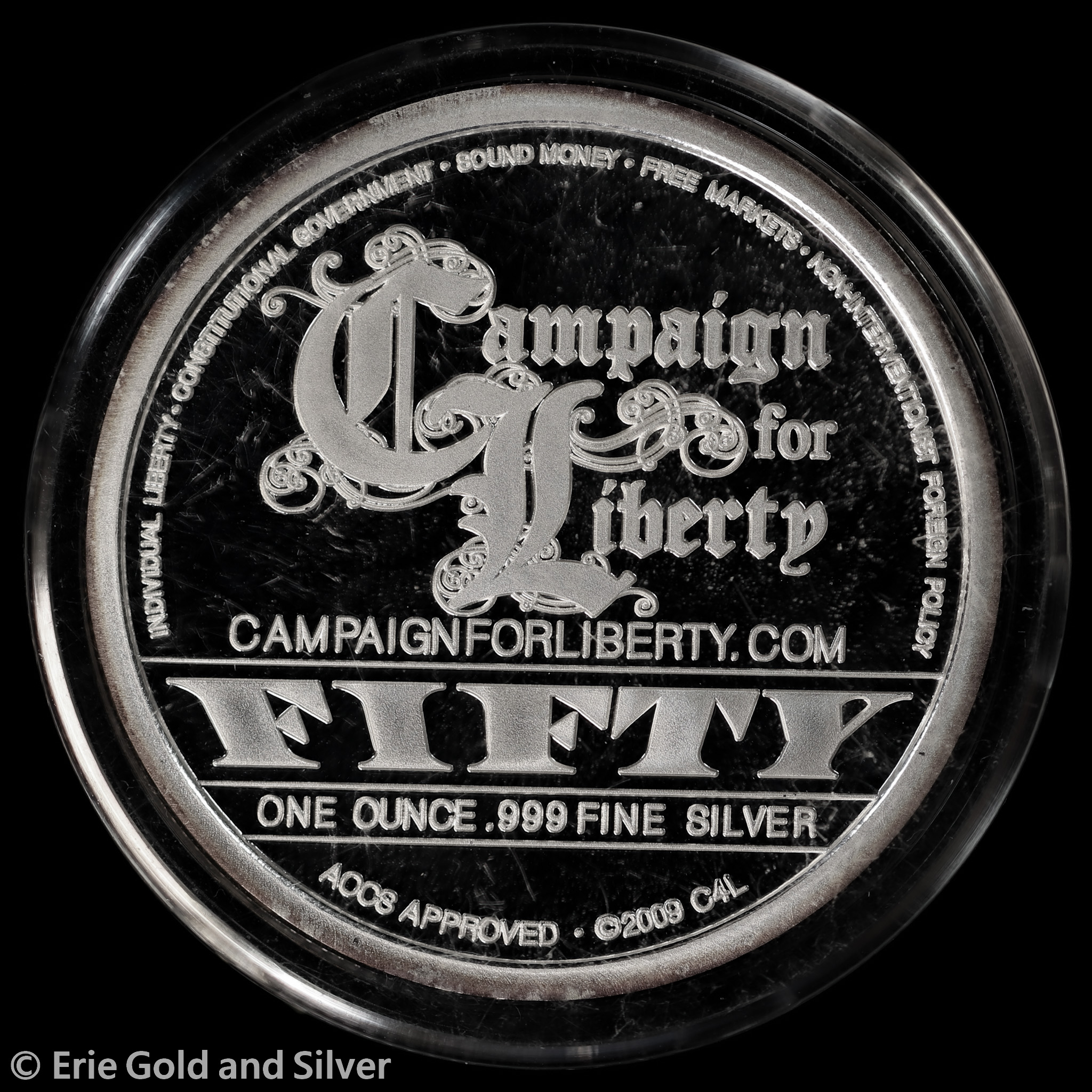 For sale is a 2009 Ron Paul Ludwig Von Misses 1 oz Silver Proof Round.